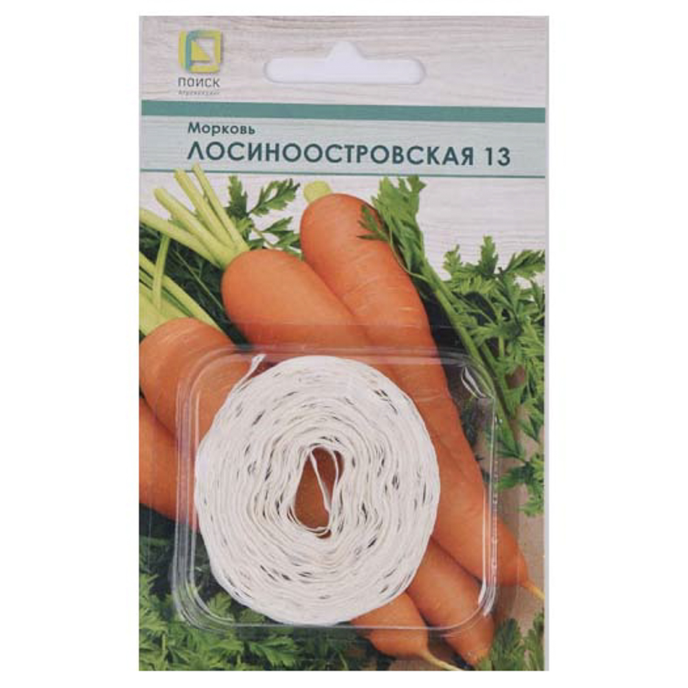 Семена моркови сорта «Лосиноостровская 13» предназначены для выращивания среднеспелого сорта с корнеплодами великолепного вкуса и высоким содержанием каротина. Сорт относится к типу Берликум-Нантская. Период от всходов до уборки урожая составляет 110–120 дней. Корнеплод цилиндрический, слабосужающийся к основанию, длиной более 15 см, массой 110–170 г. Поверхность гладкая, с мелкими глазками. Мякоть оранжевая, сочная. Вкусовые качества высокие. Рекомендован для потребления в свежем виде, переработки и хранения. Длина ленты — 8 м, количество семян на ленте — не менее 350 штук (±2%). Сроки посева — с 1 по 15 мая, глубина заделки — 1 см. Сбор урожая — с 20 августа по 20 сентября. Схема посадки — 20–30×5–8 см. Сроки указаны для средней полосы России.
