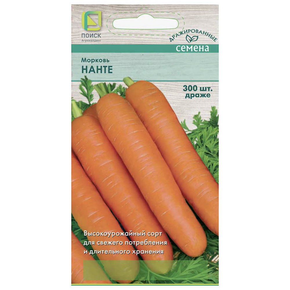 Семена моркови сорта «Нанте» предназначены для выращивания высокоурожайного среднеспелого сорта с великолепными корнеплодами, пригодными для хранения. Сорт относится к типу Нантская. Период от всходов до уборки урожая составляет 100–110 дней. Корнеплод цилиндрический, тупоконечный, с отличной внутренней и наружной окраской. Длина — 16–18 см, масса — 110–120 г. Сердцевина маленькая, оранжевого цвета. Мякоть нежная, сочная, великолепного вкуса. Рекомендован для потребления в свежем виде, переработки и хранения. Длина ленты — 8 м, количество семян на ленте — 350 штук (±2%). Сроки посева — с 1 по 15 мая, глубина заделки — 1 см. Сбор урожая — с 10 августа по 20 сентября. Схема посадки — 20–30х5–8 см. Сроки указаны для средней полосы России.