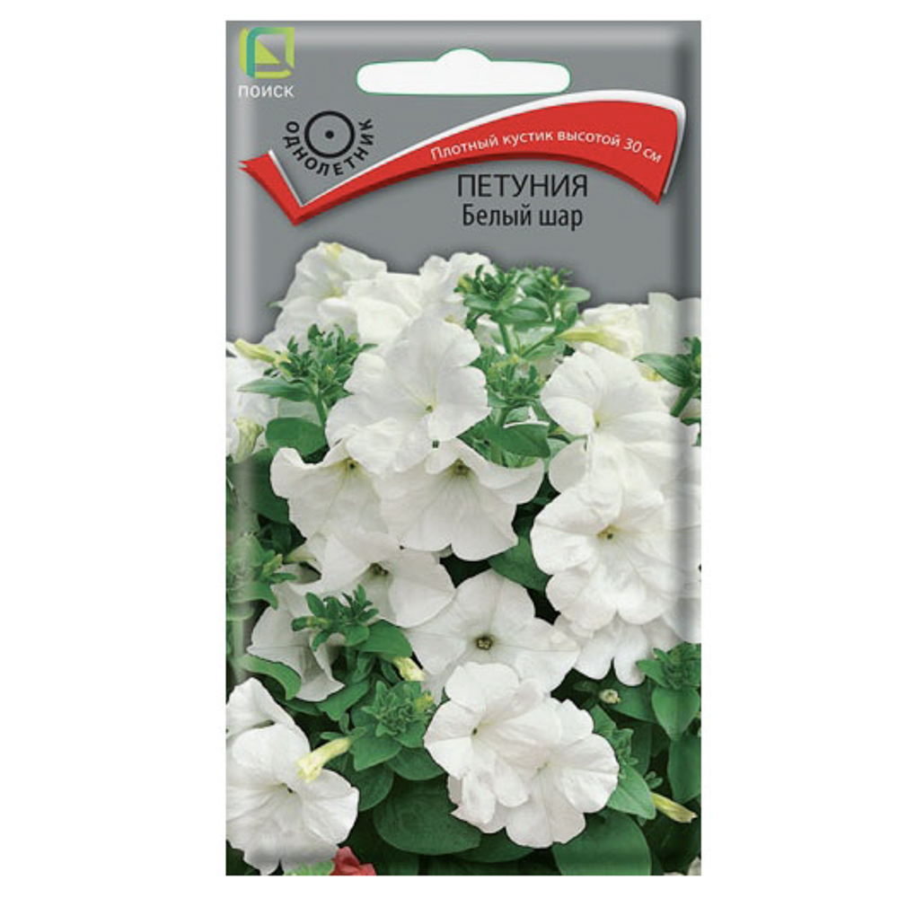 Семена петунии сорта «Белый шар» предназначены для выращивания однолетнего растения с модным сочетанием белых цветов и зелёной листвы. Куст плотный, высотой около 30 см, украшен красивыми чисто-белыми цветами диаметром 5–6 см. Цветение обильное, продолжается с июня по сентябрь. Используется в клумбах для ярких групп, на бордюрах и рабатках. Растение светолюбивое, засухоустойчивое, хорошо развивается на любых питательных почвах. Посев проводят в феврале–марте; семена слегка вдавливают в предварительно увлажнённую почву, не присыпая землёй. Посадочную ёмкость накрывают стеклом или плёнкой и ставят в освещённое место. Всходы появляются при температуре почвы +18–20°C через 7–14 дней. Сеянцы пикируют в фазе двух настоящих листьев. Высадка рассады в открытый грунт — в мае, с соблюдением расстояния между растениями 20–30 см. Вес семян в упаковке — 0,1 г (±9%).