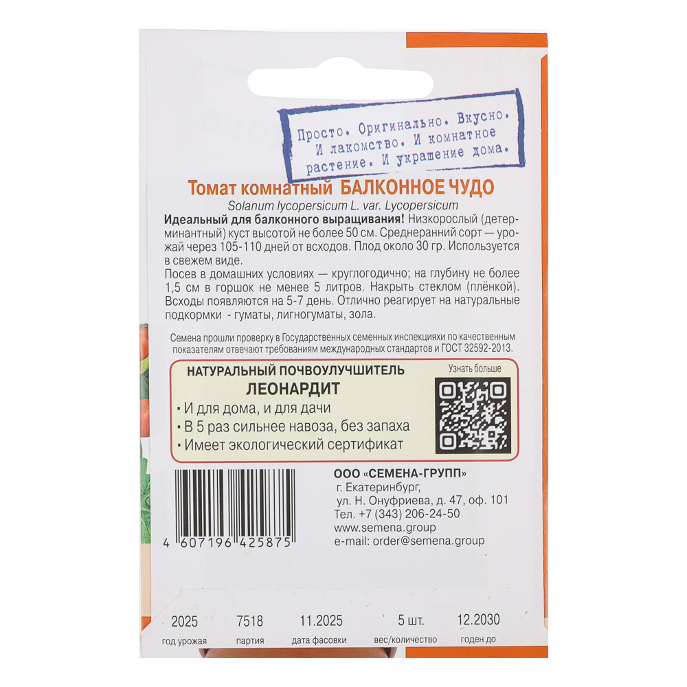 Томат Балконное чудо – это настоящий гигант среди комнатных сортов: низкорослый, но мощный детерминантный куст высотой не более 50 см, способный порадовать вас обильным урожаем крупных, сочных и сладких помидоров весом около 30 г, прямо на балконе, подоконнике или в маленькой теплице. Идеально подходит для выращивания в домашних условиях: не требует пасынкования, отлично растёт в горшках объёмом от 5 л (глубина почвы не менее 1,5 см) и радует урожаем уже через 105-110 дней от всходов. Первые ростки появляются всего за 5-7 дней после посева, а плоды можно использовать как в свежем виде, так и для заготовок, они отличаются плотной мякотью и насыщенным вкусом. Растение легко адаптируется к условиям квартиры, хорошо реагирует на натуральные подкормки: гуматы, лигногуматы, золу, и не нуждается в сложном уходе.
