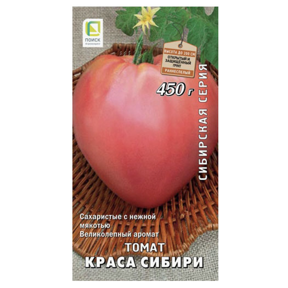 Семена томата сорта «Краса Сибири» предназначены для выращивания раннеспелого сорта, пригодного для открытого и защищённого грунта. Период от всходов до начала созревания составляет 95–110 дней. Растение высокорослое, достигает высоты до 200 см, требует подвязки и формирования. Плоды мясистые, крупные, сердцевидной формы, гладкие или слаборебристые, средней массой 300–450 г (первые плоды — до 1 кг). Окраска зрелого плода — розово-малиновая с небольшим желтоватым пятном у плодоножки. Вкус прекрасный, мякоть сочная, ароматная, кожица нежная. Предназначен для употребления в свежем виде, приготовления соков и разнообразных томатопродуктов. Сроки посева — с 10 по 20 марта, глубина заделки семян — 1–1,5 см. Высадка рассады — с 5 по 25 мая. Сбор урожая — с 30 июля по 31 августа. Схема посадки — 60х40 см. Сроки указаны для средней полосы России. Вес семян в упаковке — 0,1 г (±9%).