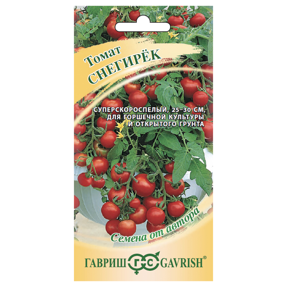 Томат «Снегирек» – маленький, но очень вкусный! Миниатюрный суперскороспелый сорт (80-90 дней от всходов до сбора)идеален для выращивания в горшках на подоконнике, балконе или в открытом грунте. Особенно хорош для Северных регионов и небольших огородов: растение супердетерминантное, высотой всего 25-30 см, не требует пасынкования и формировки – просто посадил и собирал урожай! Плоды массой 25 г, очень сладкие, с высоким содержанием сухих веществ – идеальны для свежего потребления, детского питания и консервирования. Урожайность – 3,0-4,5 кг/кв.м. Выращивают прямым посевом семян в открытый грунт или как рассаду.