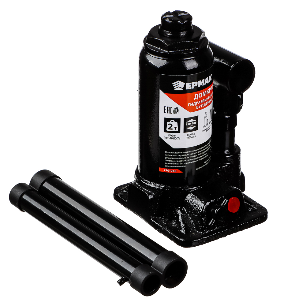 Гидравлический бутылочный домкрат ЕРМАК грузоподъемностью 2 тонны – надежный помощник для ремонта и обслуживания легкового транспорта. Компактная конструкция и продуманная эргономика обеспечивают удобство использования в гаражных условиях и на дороге. Домкрат оснащен системой плавного хода, что обеспечивает точное позиционирование груза. Прочная металлическая конструкция, удобная рукоять для управления и надежный предохранительный клапан гарантируют безопасность при работе. Минимальная высота подхвата составляет 90 мм, а рабочий диапазон подъема находится в пределах 150-285 мм. Этот домкрат идеально подходит для сезонной смены колес, мелкого ремонта автомобиля и работы в гаражных условиях. Важно помнить, что домкрат предназначен исключительно для подъема грузов и не может использоваться как длительная опора. Качественная гидравлика и надежная конструкция обеспечивают длительный срок службы при правильной эксплуатации.