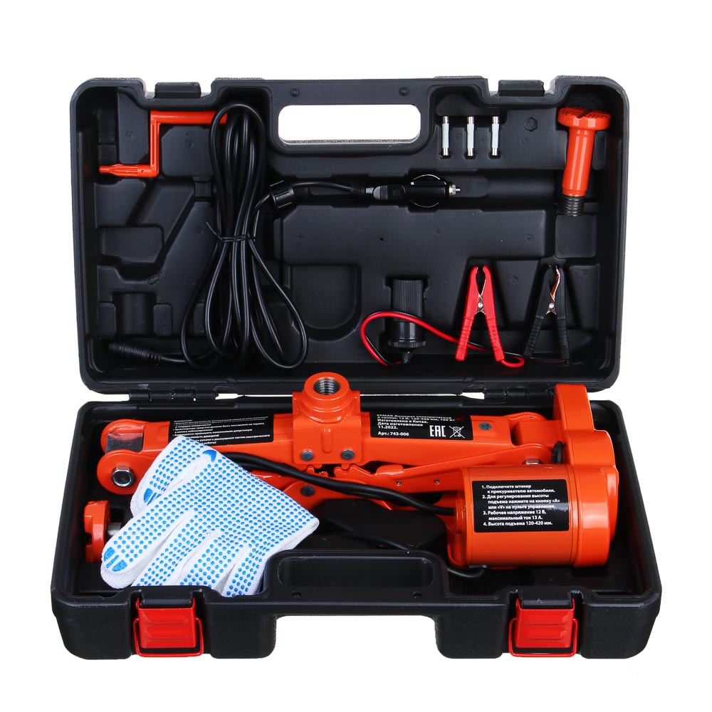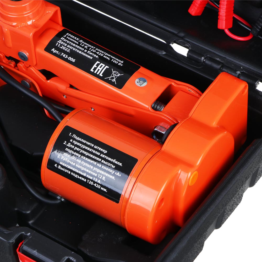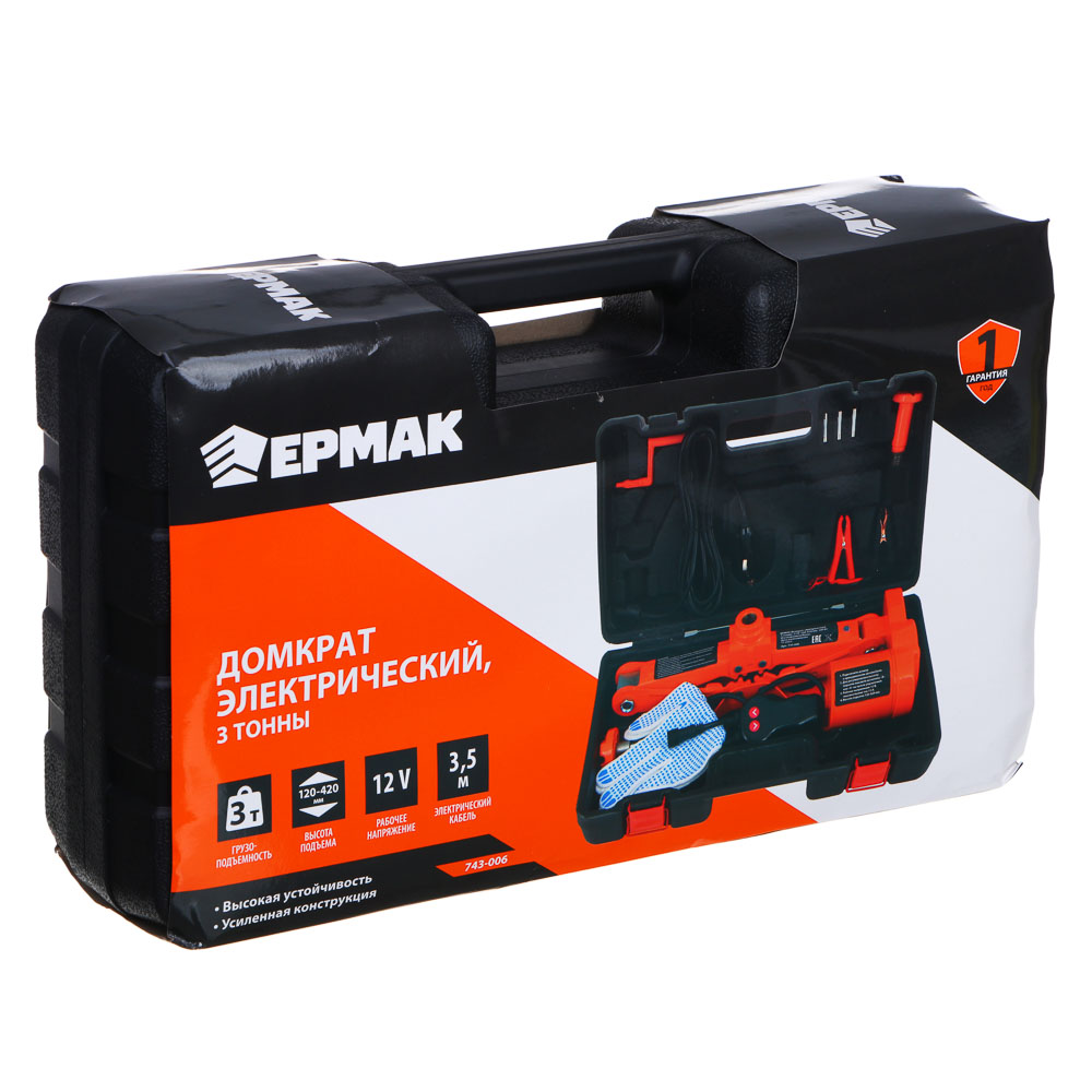 Электрический домкрат ЕРМАК может использоваться с автомобильным разъемом питания 12V. Он может поднять автомобиль менее чем за 1 минуту ! Простой и компактный дизайн комплекта легко упаковывается в прилагаемую пластиковую коробку для легкой транспортировки и хранения. Набор будет полезен в гараже, автомастерской, также пригодится водителям в поездке.Основные характеристики:Минимальная высота подъема: 12 см;Максимальная высота подъема: 42 см;Грузоподъемность - 3,000 кг;Электрический кабель 3,5 м.