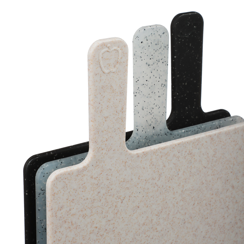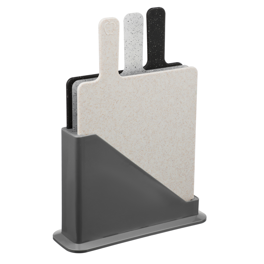 Набор разделочных досок на подставке набор 4 шт., 30х20 см является незаменимым атрибутом любой кухни. Подставка для разделочных досок выполнена из прочного, безопасного пластика, который помогает сохранять остроту ножей, материал не впитывает в себя запахи и масла. Поверхность досок оснащена желобками для того, чтобы сок от продуктов не стекал на поверхность стола, также каждая доска обладает уникальным рельефом для оптимизации нарезки соответствующего продукта, а на обратной стороне есть противоскользящие накладки.