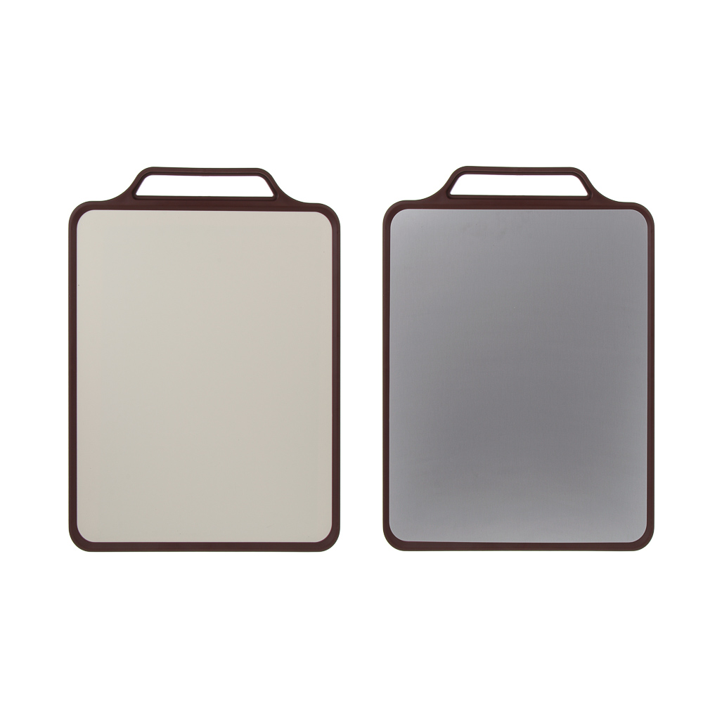 Доска разделочная SATOSHI 38,7x30x1,5 см из нержавеющей стали и пластика – это практичное и функциональное решение для домашней кухни. Монолитная вставка из нержавеющей стали может использоваться для сервировки сыра, мясных нарезок, а также суши или канапе, а большая рабочая поверхность из пластика идеально подходит для нарезки и шинковки. Доска легко моется, не накапливает бактерии и запахи при своевременном уходе, не снижает остроту заточки ножей. Не скользит по столешнице и не деформируется. Предусмотрена ручка для удобного перемещения и комфортного хранения. Лаконичный дизайн впишется в любой интерьерный стиль.