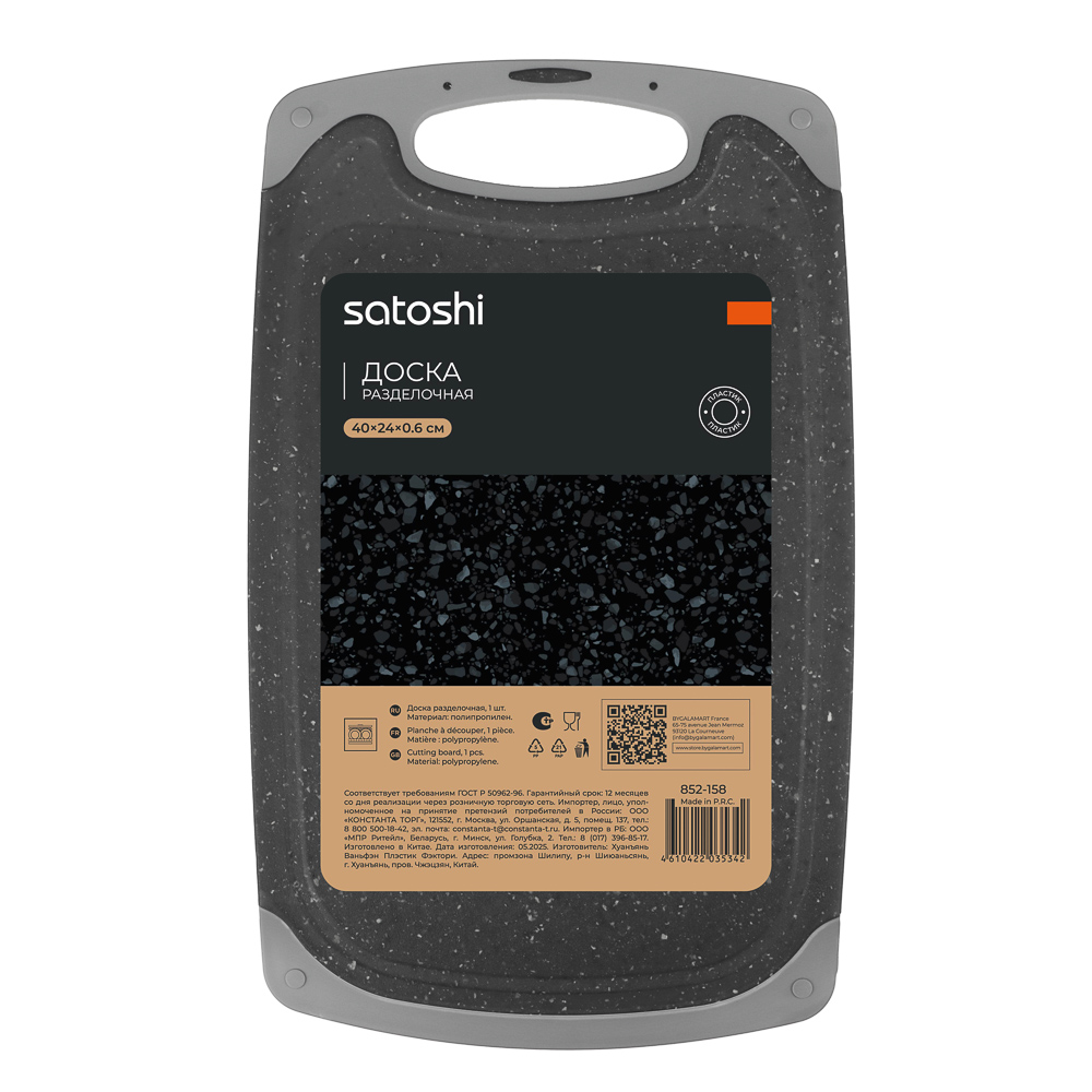 Доска разделочная SATOSHI Марсель 40х24х0,6 см – максимум пространства для готовки! Большая площадь идеальна для нарезки мяса, разделки птицы, работы с тестом или шинковки овощей – всё помещается без риска рассыпать ингредиенты. Легко моется в посудомоечной машине, не впитывает запахи и не деформируется. Лаконичный черный дизайн сочетается с любым стилем кухни. Для домашних шеф-поваров и кулинарных энтузиастов – готовьте с комфортом и без компромиссов!