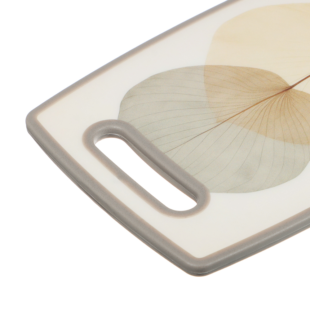 Разделочная доска VETTA размером 20х30х1,2 см из полипропилена с растительным дизайном и вырубной ручкой – это стильный и функциональный помощник на кухне. Компактные габариты делают ее удобной для нарезки овощей, фруктов, сыра, хлеба и других продуктов, а прочный полипропилен гарантирует долговечность и гигиеничность – материал не впитывает запахи, устойчив к царапинам и безопасен для пищевого использования. Элегантный растительный рисунок придает доске эстетичный вид, позволяя использовать ее также для сервировки блюд. Удобная вырубная ручка обеспечивает комфортный хват и возможность подвешивания для компактного хранения. Практичная, легкая и износостойкая, эта разделочная доска станет приятным дополнением к вашим кухонным аксессуарам.