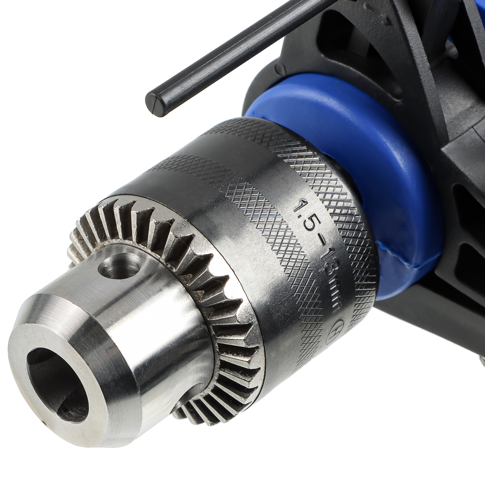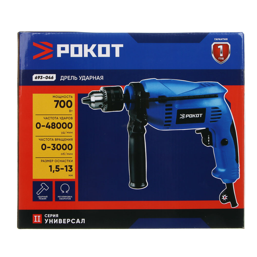РОКОТ Дрель ударная 700Вт — профессиональный инструмент для выполнения широкого спектра строительных и монтажных работ. Модель оснащена мощным двигателем, обеспечивающим стабильную работу при сверлении различных материалов, включая бетон, металл и дерево. Инструмент поддерживает два режима работы: стандартное сверление и ударное сверление, что позволяет эффективно работать с кирпичом и бетоном. Функция реверса упрощает извлечение сверл и выкручивание крепежа. Эргономичная конструкция и сбалансированный вес обеспечивают комфортную работу даже при продолжительном использовании. Дрель отличается надежностью и предназначена для интенсивной эксплуатации. Она подходит как для профессионального применения, так и для выполнения бытовых задач.