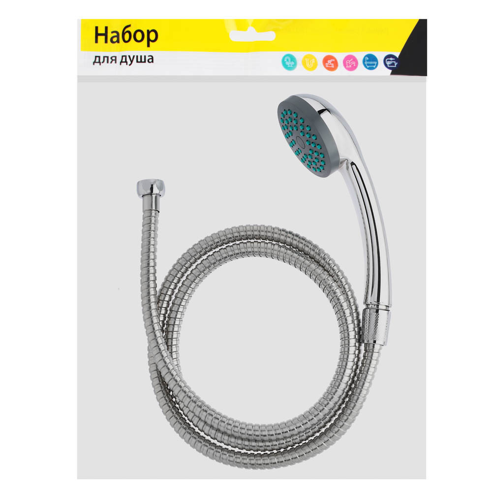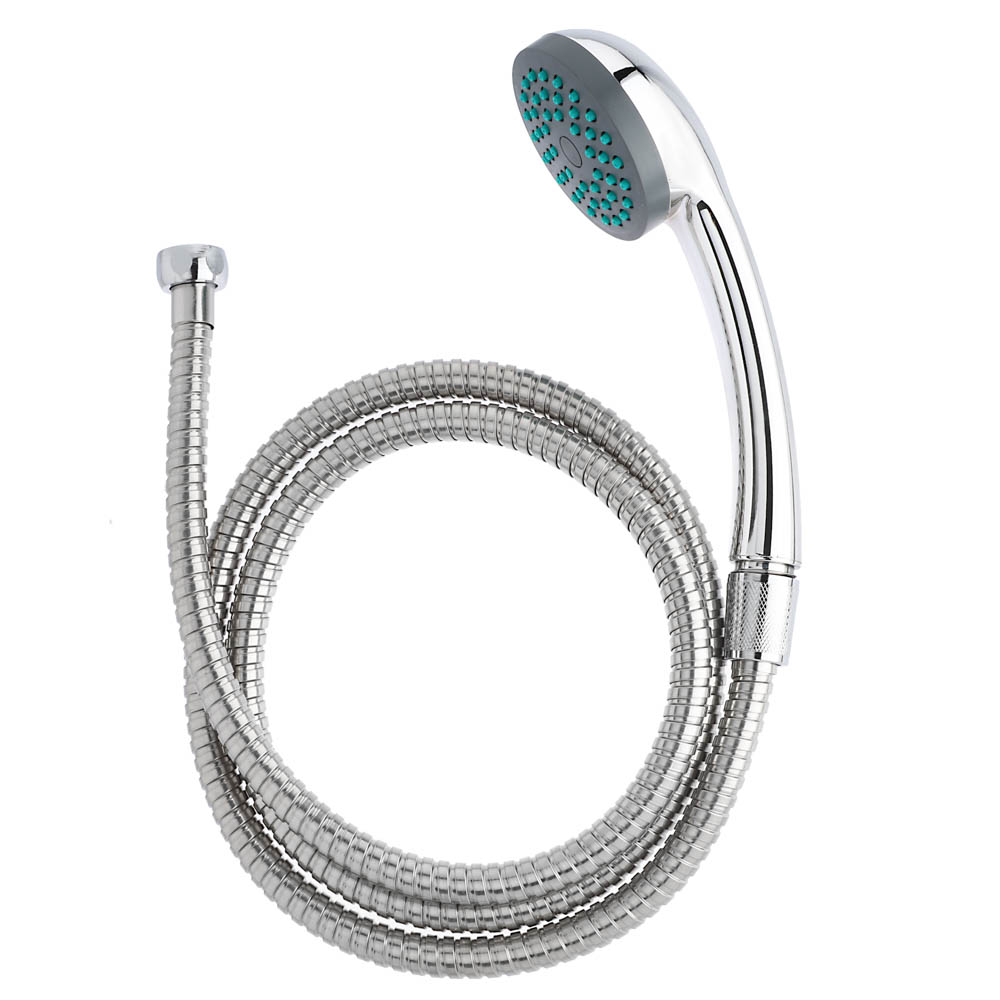 Набор для душа из двух предметов включает круглую лейку диаметром 65 мм и шланг длиной 150 см. Размер соединения: 1/2"-1/2". Лейка имеет классическую форму с одним режимом работы. Пластиковые форсунки долго не засоряются, обеспечивают равномерное распыление воды, имитируя дождь. Оплетка шланга выполнена из нержавеющей стали. Аксессуар не подвержен коррозии, легко моется с сохранением первоначального вида.