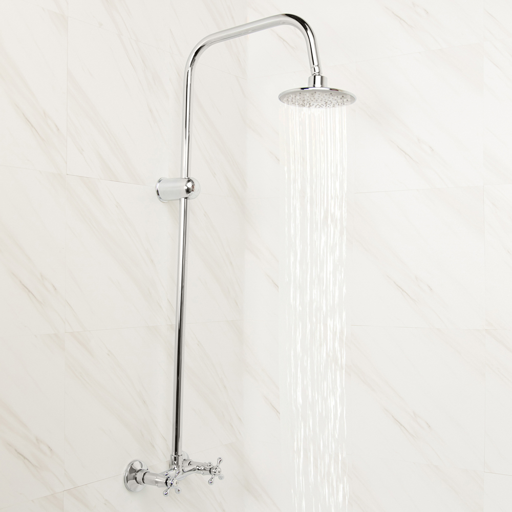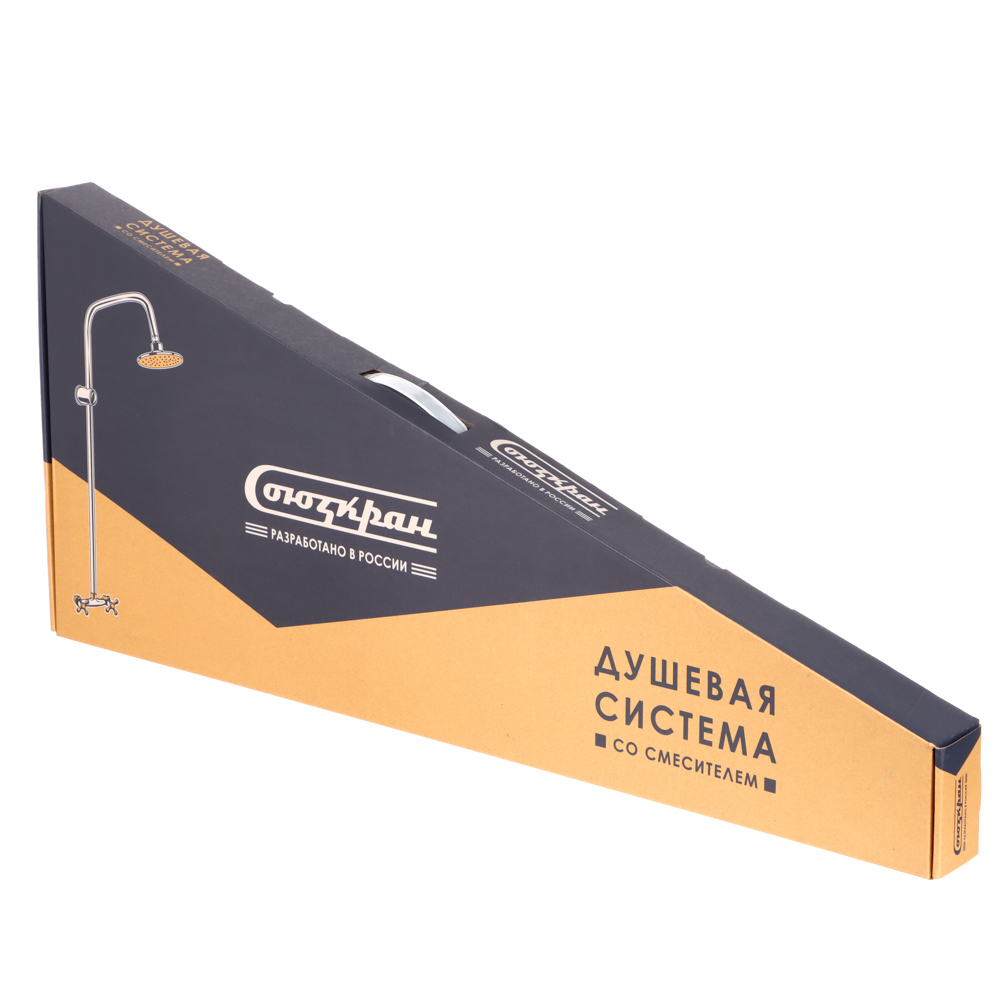 Душевая система со смесителем СоюзКран – это комплект из смесителя с керамическими кран-буксами 1/2", штанги и верхнего душа с одним режимом работы. Благодаря удобному фиксированному расположению душевой насадки четко над головой пользователя, подача воды будет осуществляться равномерно, а также не потребуется дополнительная настройка наклона насадки, что делает процесс принятия душа более быстрым и комфортным. Кран-буксы не протекают, работают бесшумно и точно. Отличный выбор для современной ванной комнаты.Материал корпуса: сплав цинка. Материал кран-буксы: латунь, керамика. Шланг: ПВХ, оплетка - нержавеющая сталь, лейка: ABS пластик. Эксцентрики: нержавеющая сталь, соединительный размер: 1/2 дюйма. Диапазон рабочего давления: 0,1-0,63 МПА.