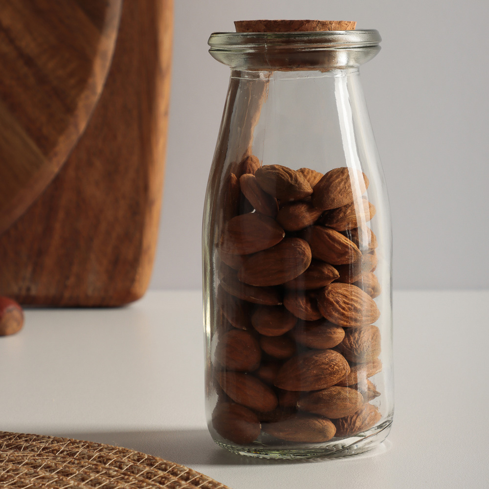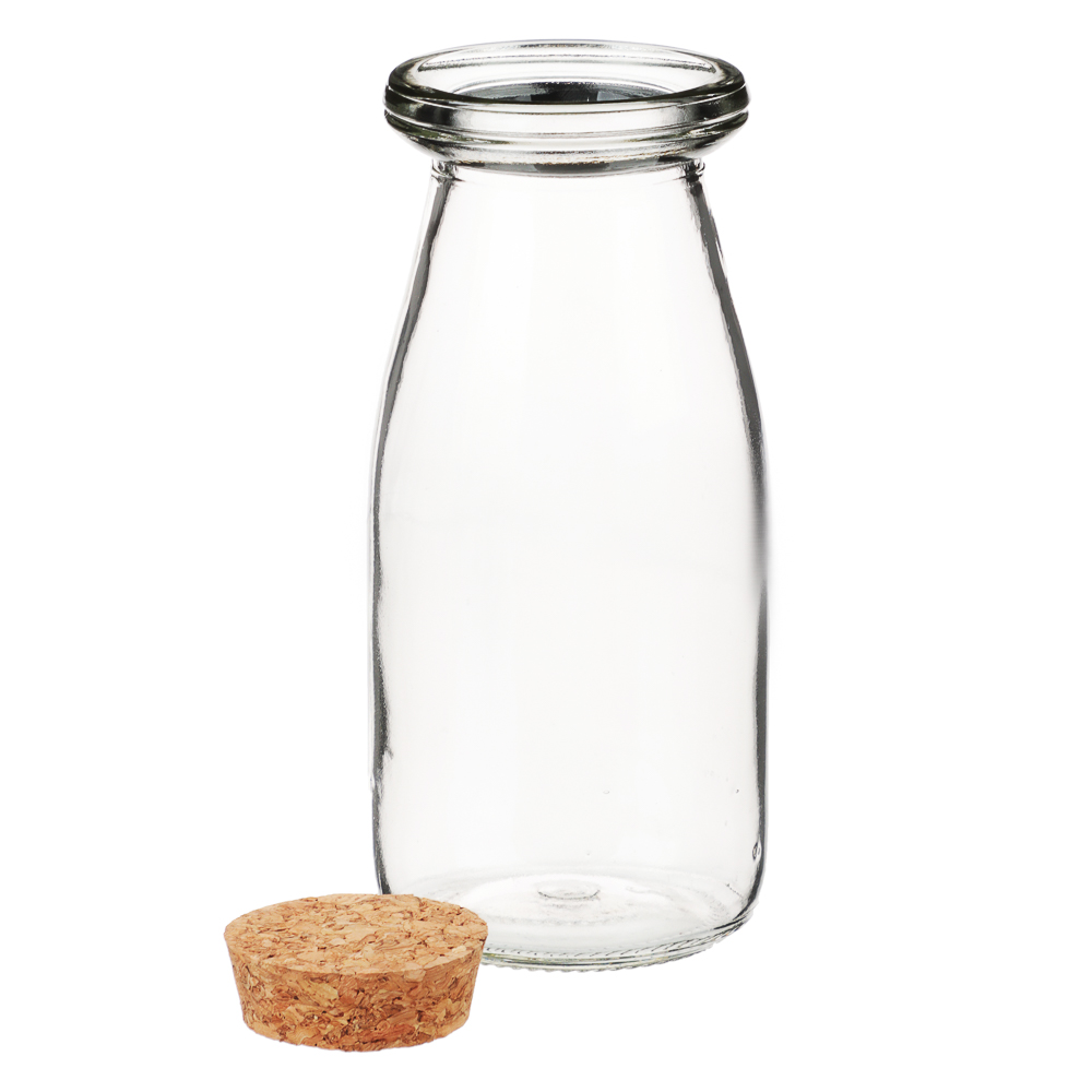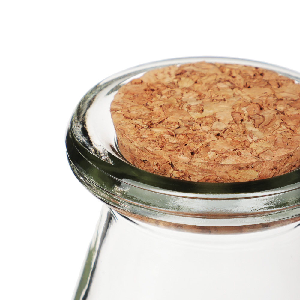 Оригинальная и стильная баночка для хранения из гладкого прозрачного стекла идеально впишется в современный интерьер не только кухни, но даже гостиной или спальни. Эта универсальная банка комплектуется удобной корковой пробкой круглой формы, благодаря которой, с одной стороны, бутылочку удобно открывать и закрывать, а с другой - внешний вид закрытого пробкой сосуда не оставит равнодушным ни одного гостя. Подарки с такими маленькими бутылочками будут отлично выглядеть и в качестве дорогого корпоративного сувенира. Насыпать в них при этом можно и конфетки, леденцы, и элитный чай, и редкие пряности, и даже картину из цветного песка. Размер 13х6 см.