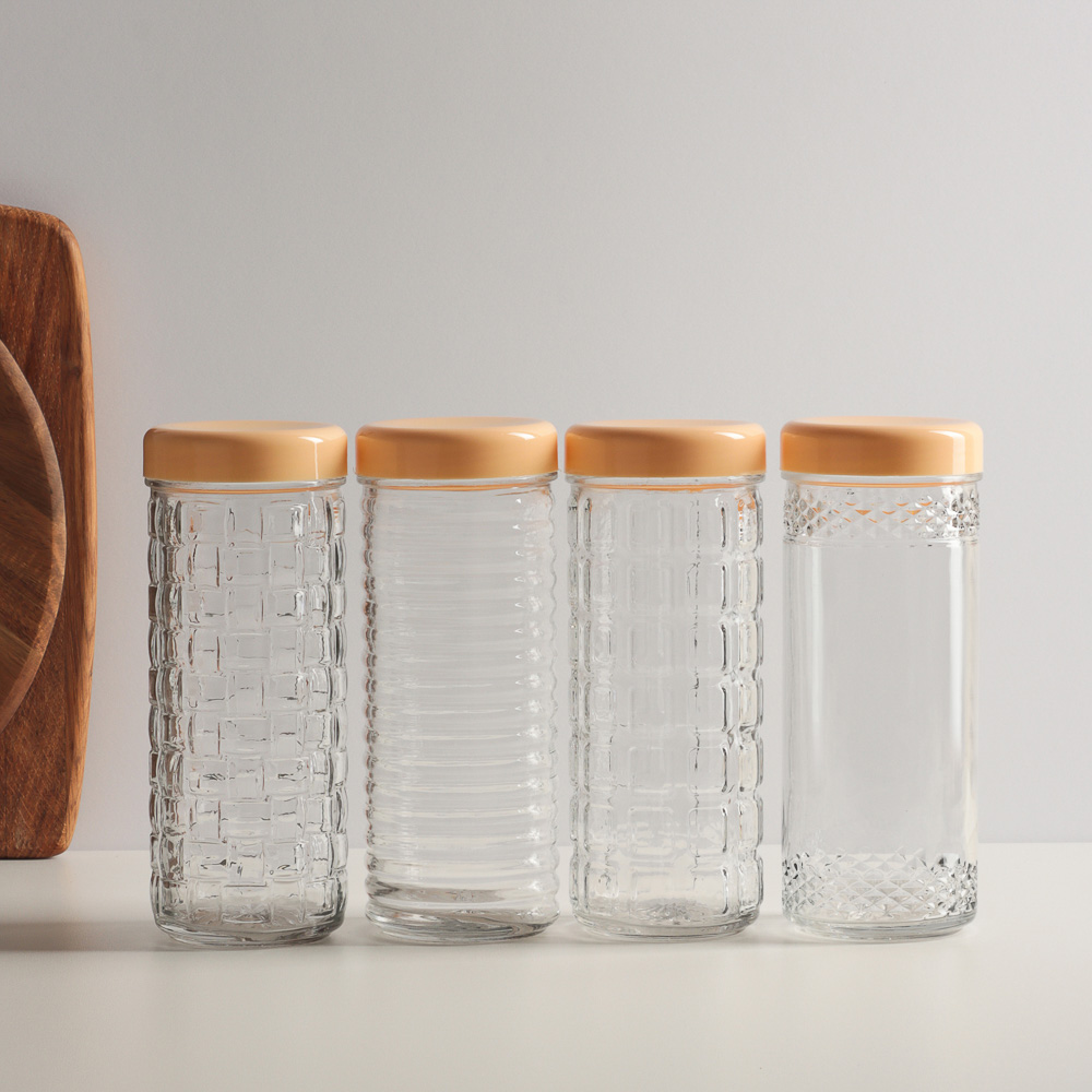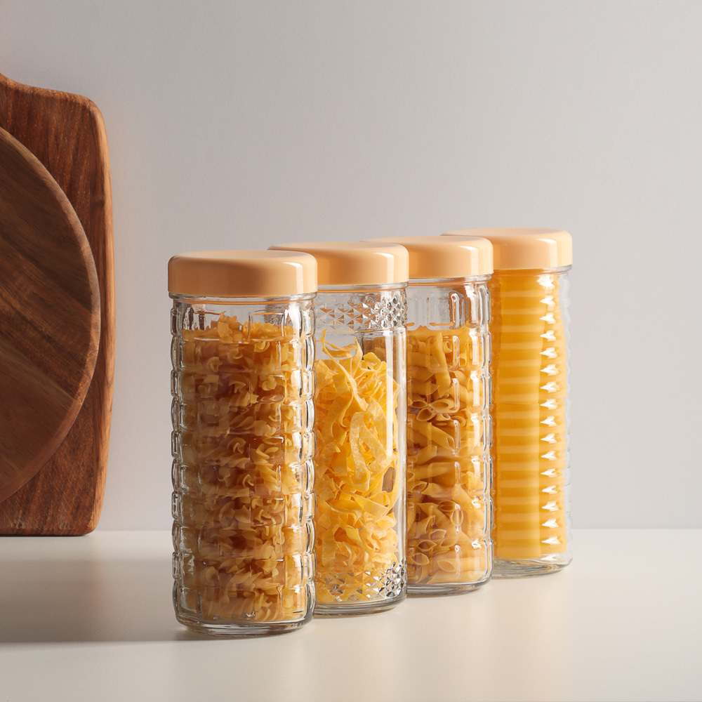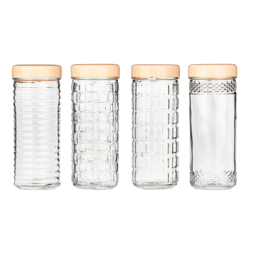 Стеклянная банка с крышкой 0,85 л предназначена для хранения сыпучих продуктов и одновременно выполняет декоративную функцию, украшая кухонные полочки. Элегантное исполнение оживит интерьер кухни. Благодаря вытянутой вверх форме не занимает много места в шкафу, при этом является вместительной и удобной. Идеальное решение для правильного хранения круп, макаронных изделий, сушеных овощей, трав, орехов. 4 дизайна в ассортименте.