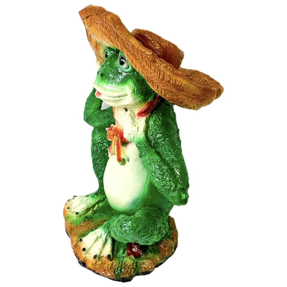Фигура садовая "Лягушка в шляпе", 38х30 см, гипс — забавная и выразительная фигурка лягушки с шляпой станет оригинальным украшением сада, террасы или у водоёма. Прочный гипс обеспечивает долговечность, а детализированная проработка элементов создаёт живой и игривый образ. Такая фигурка оживляет пространство и дарит радостное настроение.