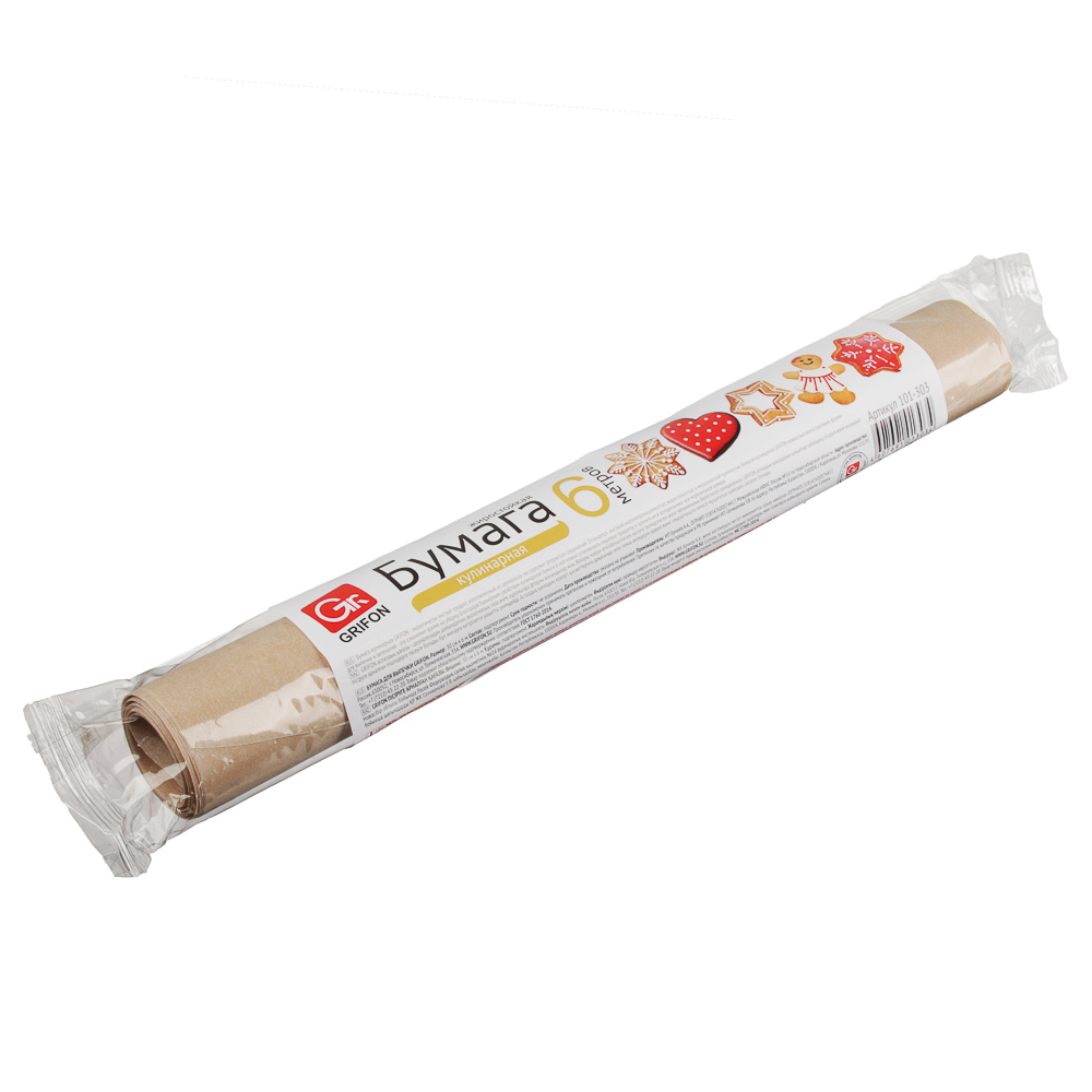 Бумага для выпечки GRIFON размером 30 см х 6 м, жиростойкая – практичный и незаменимый аксессуар для приготовления пищи. Изготовлена из прочного антипригарного материала, предотвращает пригорание и прилипание продуктов, облегчая процесс выпечки и сохраняя посуду чистой. Поставляется в удобной упаковке в плёнке, легко отматывается и отрезается по нужному размеру. Идеально подходит для выпечки хлеба, пирогов, печенья, а также для запекания овощей, рыбы и мяса без добавления масла. Бумага GRIFON – надёжный помощник на кухне, который сделает готовку проще и удобнее.