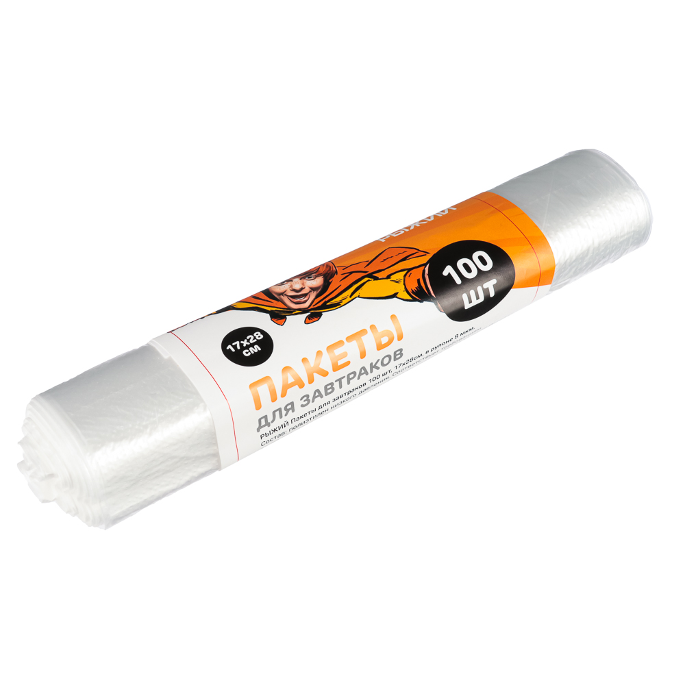Пакеты для завтраков Рыжий предназначены для фасовки продуктов и перекусов. Имеют компактный размер и оптимальную плотность 8 мкм. Легко отрываются от рулона по перфорации и не рвутся, так как имеют качественный шов. 100 шт. в рулоне.