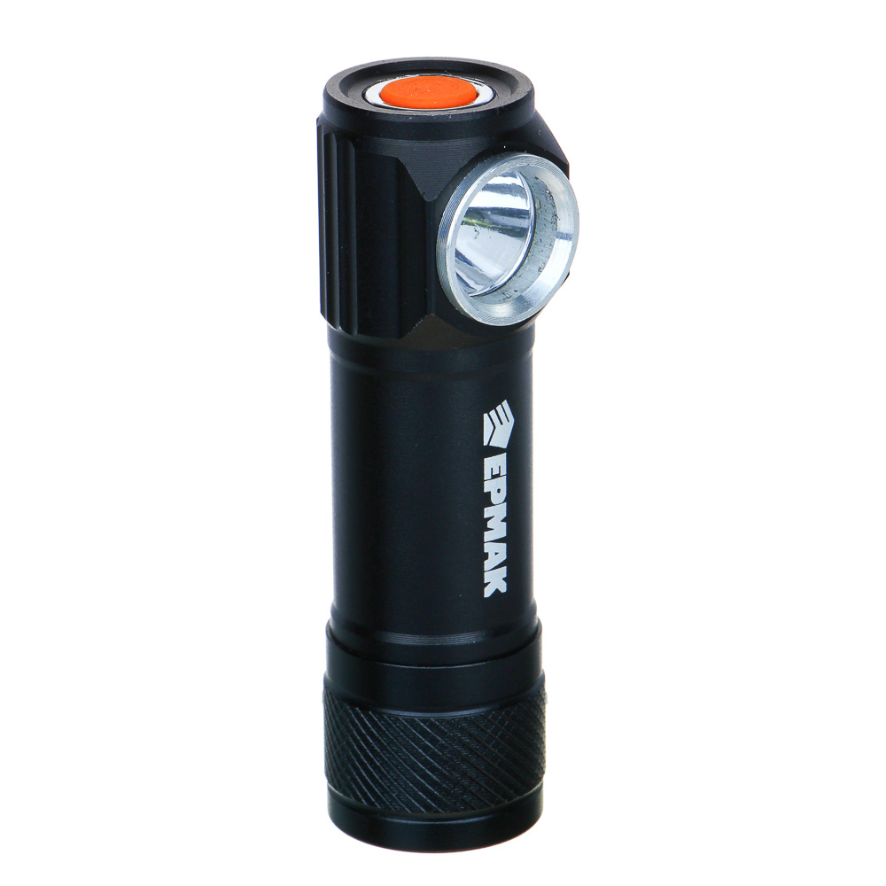 Компактный и универсальный фонарь ЕРМАК сочетает лёгкость, мощность и удобство использования. Благодаря специальному креплению его можно носить на голове, использовать как ручной фонарь или зафиксировать на металлических поверхностях с помощью встроенного магнита. Оснащён 1 LED-светодиодом, работает в 4 режимах (яркий, тусклый, стробоскоп, SOS). Световой поток — 900 лм, дальность освещения до 200 м, время автономной работы до 10 часов. Аккумулятор 1200 мАч заряжается через USB за 6 часов. Прочный корпус из пластика и металла с защитой IP63 выдерживает температуру от –20 до +50 °C. Размер: 80×24×25 мм.