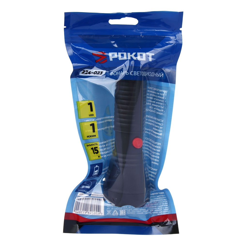 Светодиодный фонарь РОКОТ – ваш надежный источник света на каждый день. Этот компактный и мощный фонарь обеспечит яркое освещение на расстоянии до 60 метров. Он работает от 3 батареек ААА (продаются отдельно), обеспечивая до 8 часов непрерывной работы. Прочный черный корпус с защитой от брызг (IP62) выдержит повседневное использование. Идеально подходит для дома, кемпинга, походов и других активных мероприятий.