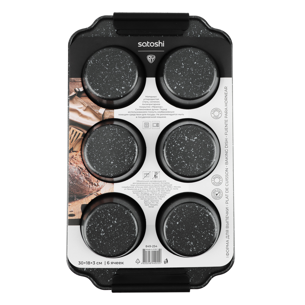 Идеальные кексы каждый раз! Форма для выпечки SATOSHI Лион с 6-ю ячейками – это простота и безупречный результат. Изготовленная из прочной углеродистой стали с мраморным антипригарным покрытием, она обеспечит равномерное пропекание и легкое извлечение ваших любимых кексов, маффинов или других мини-выпечек. Мраморное покрытие – залог легкой очистки и долговечности формы. А удобные силиконовые ручки позволят безопасно доставать горячую форму из духовки. Компактный размер 30x18x3 см экономит место на вашей кухне. Стильный серый цвет гармонично впишется в любой интерьер. Приготовьте кексы вашей мечты с формой SATOSHI Лион! Закажите прямо сейчас и наслаждайтесь безупречным результатом выпечки.