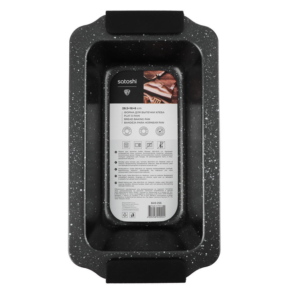 Форма для выпечки хлеба SATOSHI Лион — это отличный выбор для домашнего пекаря. Прямоугольная форма размером 28,5x16x6 см изготовлена из качественной углеродистой стали. Антипригарное покрытие "мрамор" предотвращает прилипание теста, облегчая процесс извлечения готового хлеба. Силиконовые ручки делают использование формы более удобным, позволяя легко перемещать ее даже при высокой температуре. Серый цвет придает форме стильный и современный вид, который отлично впишется в любой интерьер кухни. Форма подходит не только для выпечки хлеба, но и для других изделий, таких как кексы или запеканки. Выбирая форму для выпечки SATOSHI Лион, вы получаете надежный инструмент, который поможет вам создавать вкусные домашние угощения с легкостью и удовольствием.