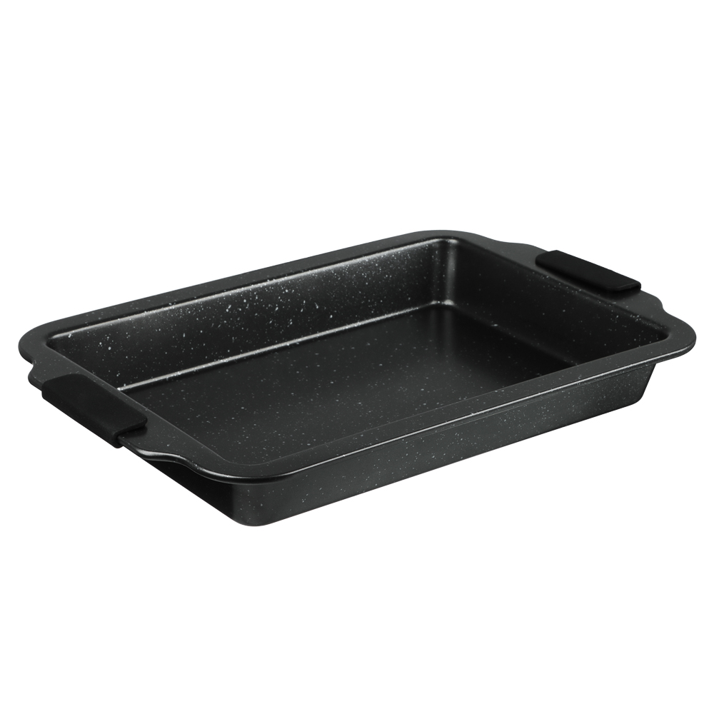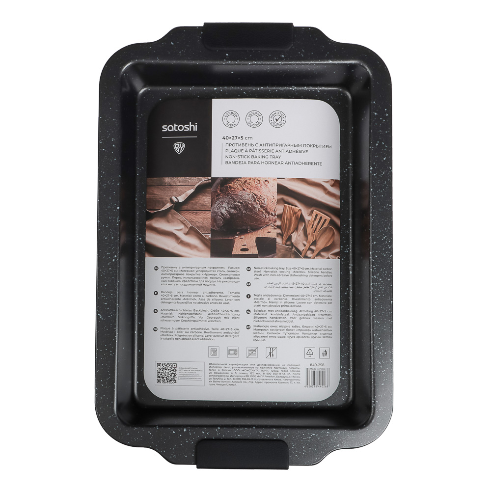 Глубокий противень SATOSHI Лион размером 40x27x5 см выполнен из высококачественной углеродистой стали с надежным мраморным антипригарным покрытием, гарантирующим легкое приготовление и очистку. Удобные силиконовые ручки обеспечивают безопасное использование, даже когда противень горячий. Его внушительные размеры идеально подходят для больших порций запеканок, жаркого, овощей и других блюд, требующих глубокой формы. Серый цвет стильно дополнит вашу кухню, а прочная конструкция обеспечит долгий срок службы. Забудьте о пригоревшей пище и сложном мытье – с противнем SATOSHI Лион готовка станет проще и приятнее.