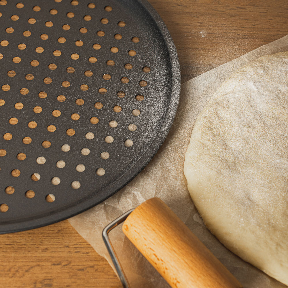 Перфорированная форма для пиццы из углеродистой стали VETTA с антипригарным покрытием поможет приготовить идеальную пиццу! Благодаря наличию дырочек во время выпекания происходит активная циркуляция горячего воздуха. Результат – равномерно пропеченная пицца с хрустящей корочкой. Такой формат противня также предотвращает намокание теста.