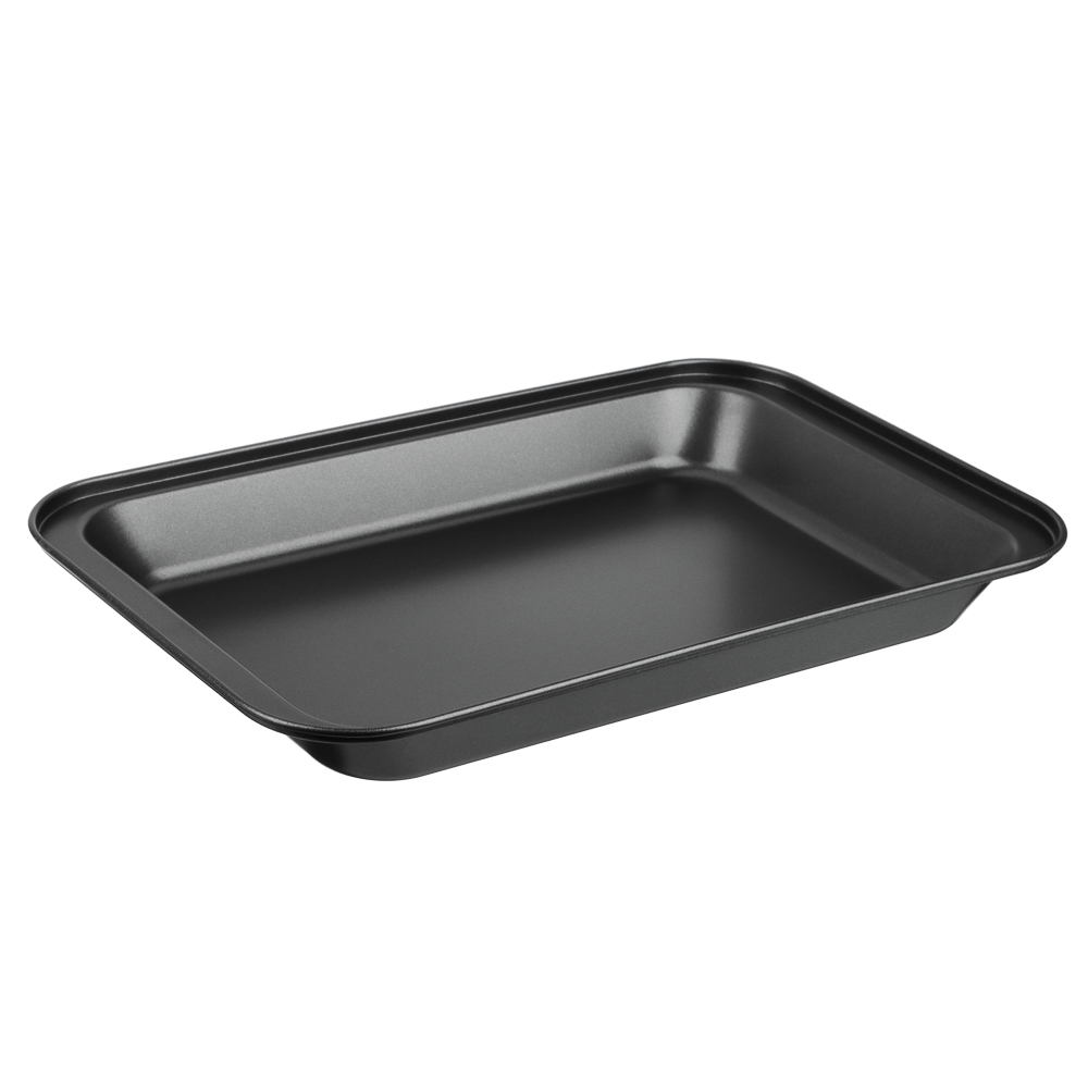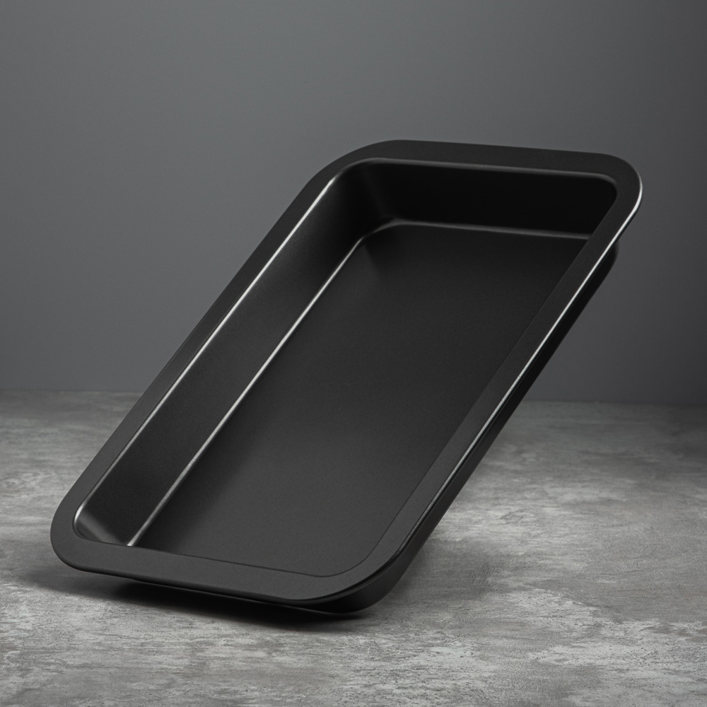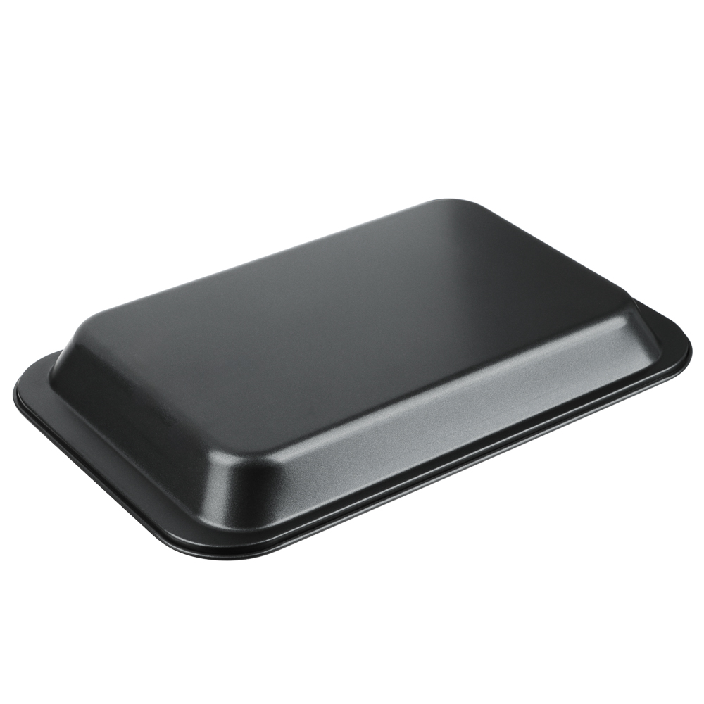 Противень глубокий размерами 36х23х4,5 см из углеродистой стали с 2-х слойным антипригарным покрытием черного цвета предназначен для использования в духовых шкафах.