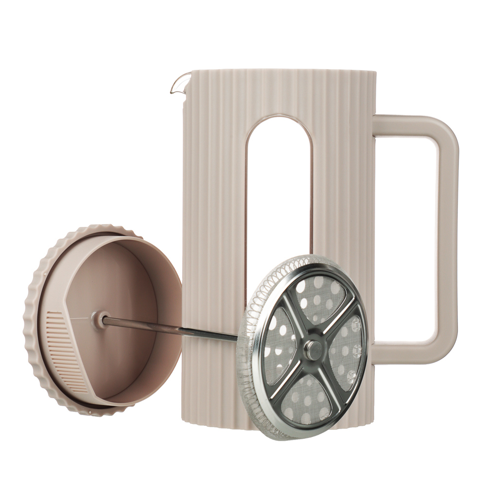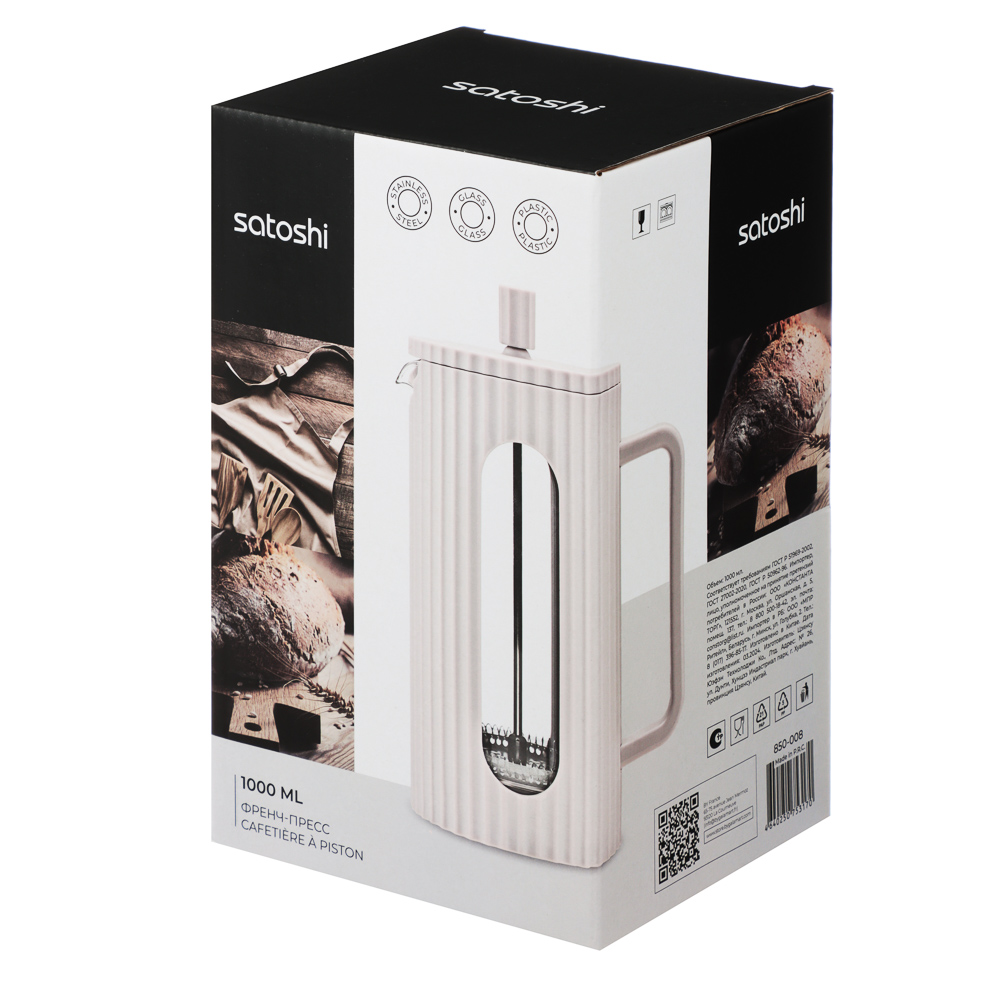 Френч-пресс SATOSHI Форман объемом 1 л — это стильный и функциональный прибор для заваривания кофе и чая. Френч-пресс выполнен из высококачественных материалов: жаропрочного стекла и пластика кремового цвета. Жаропрочное стекло выдерживает высокие температуры, а пластик обеспечивает практичное и безопасное использование посуды. Фильтр из нержавеющей стали позволяет получить напиток без осадка и примесей. Благодаря этому френч-пресс подходит для заваривания как кофе, так и чая. Поверхность корпуса и крышки ребристая, что предотвращает скольжение и обеспечивает удобный хват. Френч-пресс SATOSHI Форман легко моется, в том числе в посудомоечной машине. Это делает его простым в уходе и обслуживании. Сливной фильтр позволяет удобно разливать готовый напиток по чашкам. SATOSHI Форман — это отличный выбор для тех, кто ценит качество и комфорт.