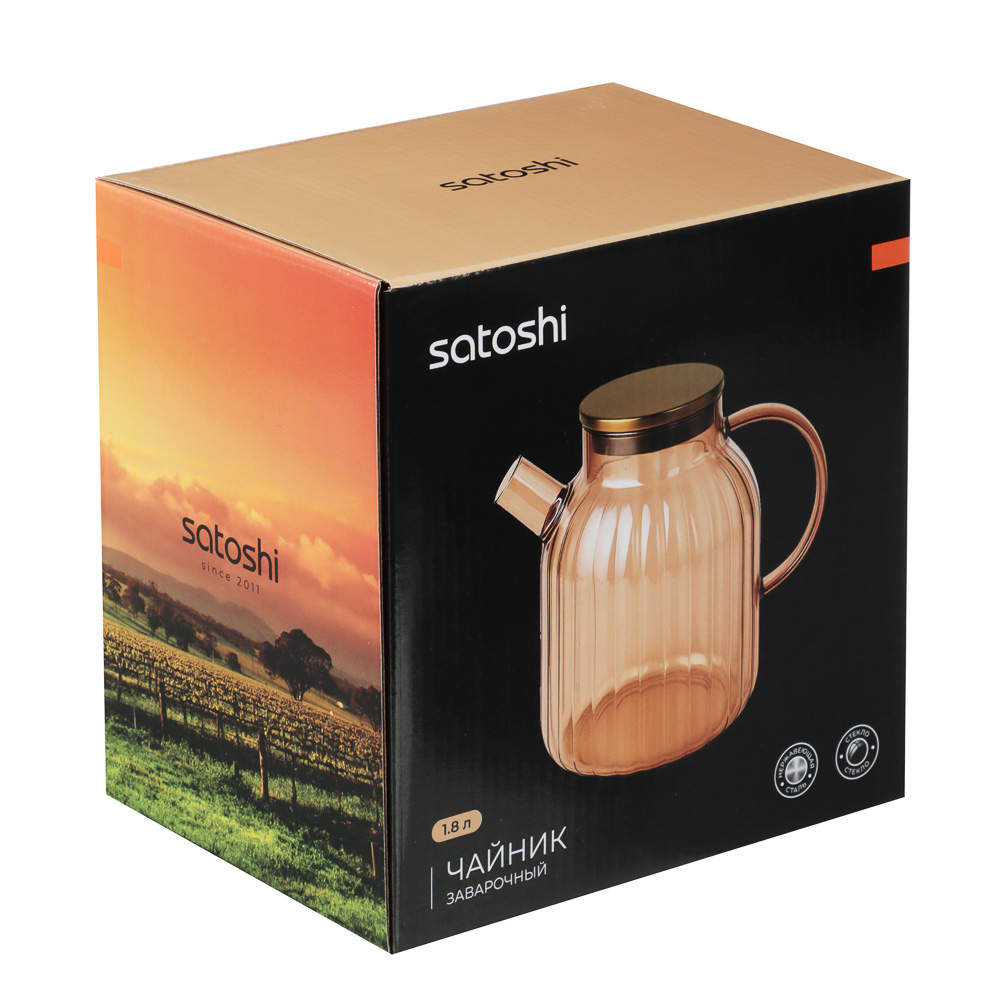 Чайник заварочный SATOSHI Голд — заботится о вашем чае так же, как вы. Представьте: раннее утро, за окном тишина, а на кухне уже пахнет свежезаваренным чаем. Настоящим — таким, где каждый лист раскрывается полностью, отдавая напитку весь свой аромат и характер. Именно для таких моментов создан этот заварочный чайник. Он не просто красивый, хотя бежевый оттенок и рельефные стенки делают его стильным акцентом кухни. Он — ваш личный бариста для чая. Стеклянные стенки позволяют следить за танцем листьев. Зелёный, чёрный, травяной или улун — вам больше не понадобятся отдельные заварники для каждого сорта. Не впитывает запахи, а значит, сегодня вы пьёте нежный жасминовый чай, а завтра — крепкий ассам, и ни один оттенок вкуса не потеряется. Объём 1,8 л — чтобы хватило на семью или друзей. Заваривайте настроение. Пейте настоящее!