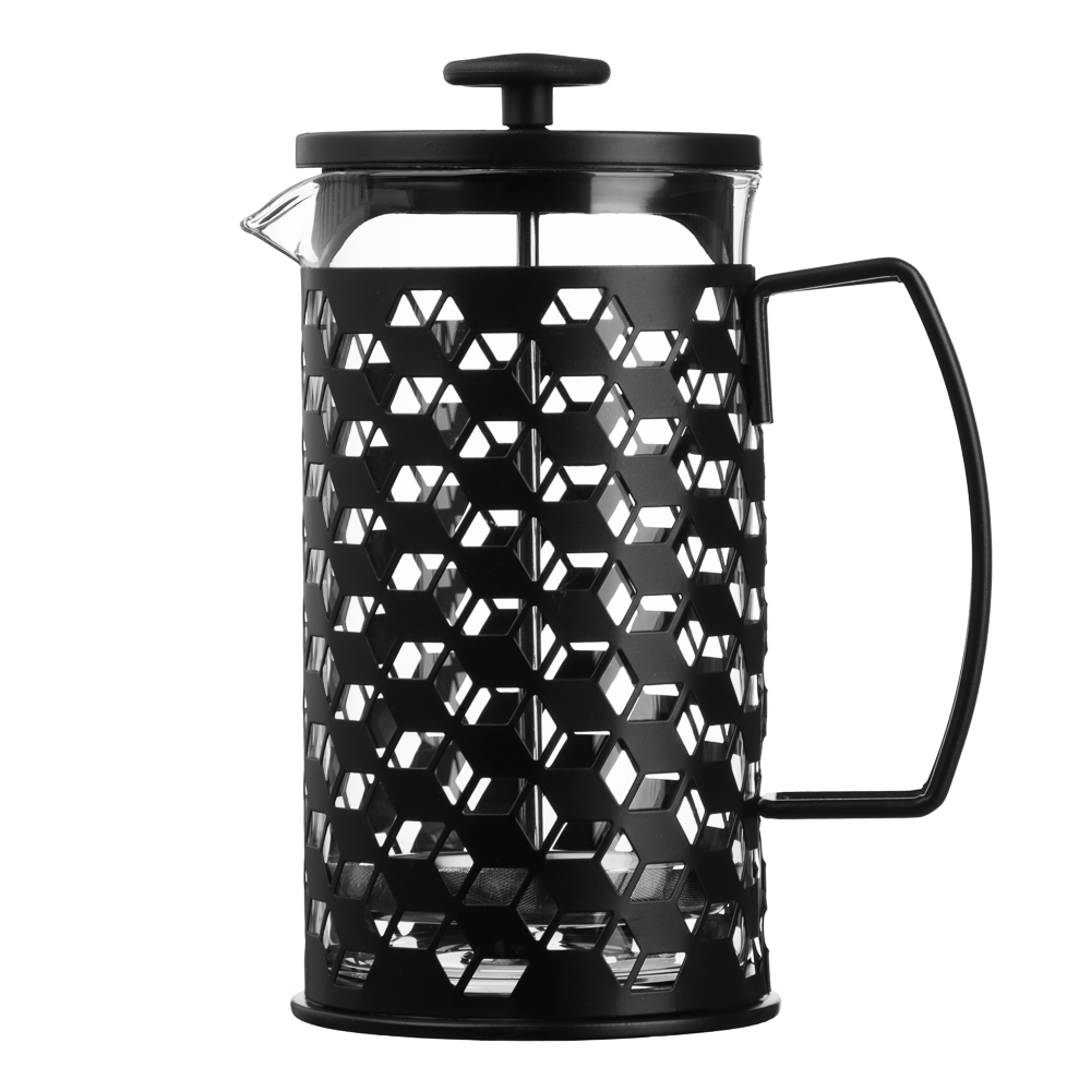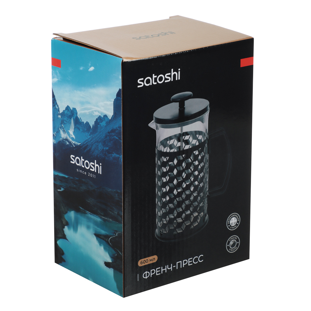 Френч-пресс 600 мл SATOSHI Монблан – элегантное и функциональное решение для приготовления ароматного кофе. Корпус из матовой нержавеющей стали черного цвета надёжно защищает термостойкую стеклянную колбу, сохраняя тепло и позволяя контролировать процесс заваривания. Двойная фильтрация обеспечивает чистый насыщенный вкус: пресс-фильтр из нержавеющей стали с мелкой сеткой задерживает кофейную гущу, а сливной фильтр в крышке предотвращает попадание даже мельчайших частиц в чашку. Эргономичная ручка и крышка с удобным нажатием делают использование безопасным и комфортным. Объём 600 мл рассчитан на 4 порции эспрессо или американо. Легко разбирается и моется. Идеален для дома, офиса или путешествий.