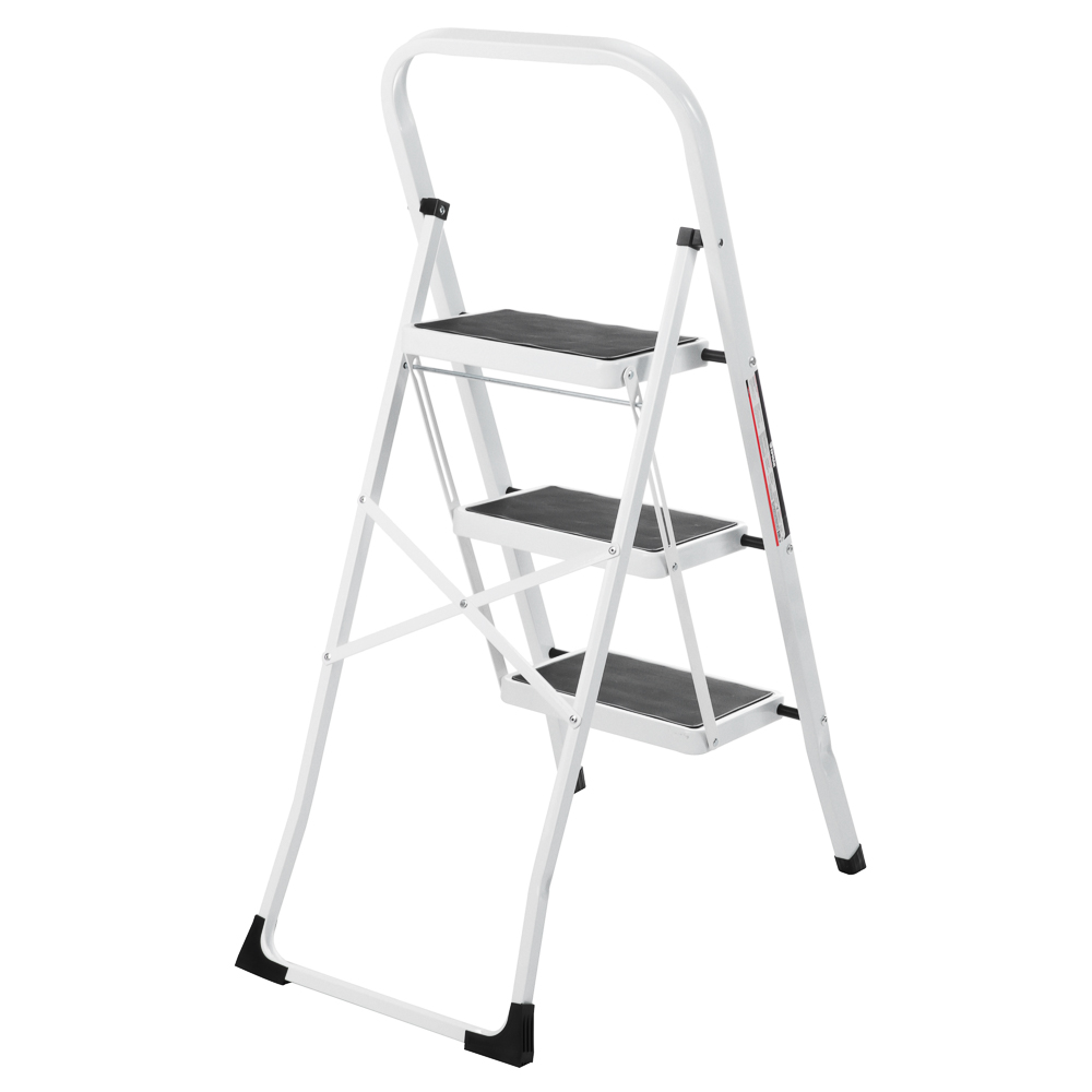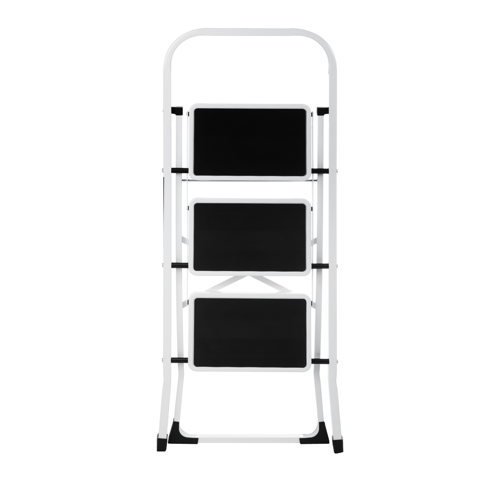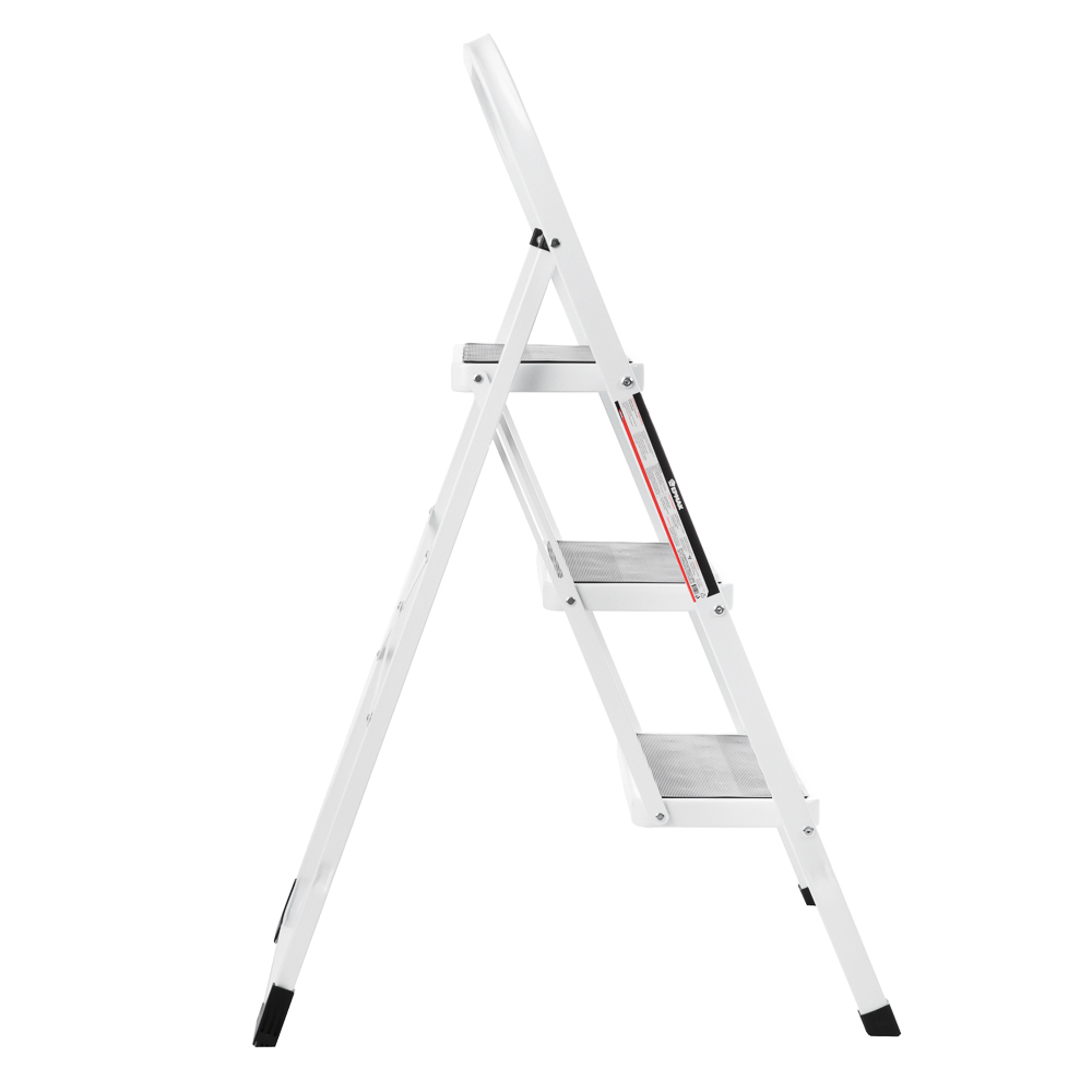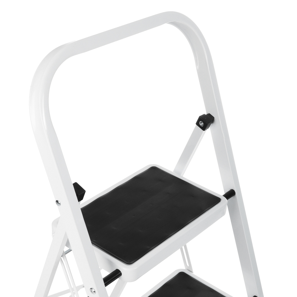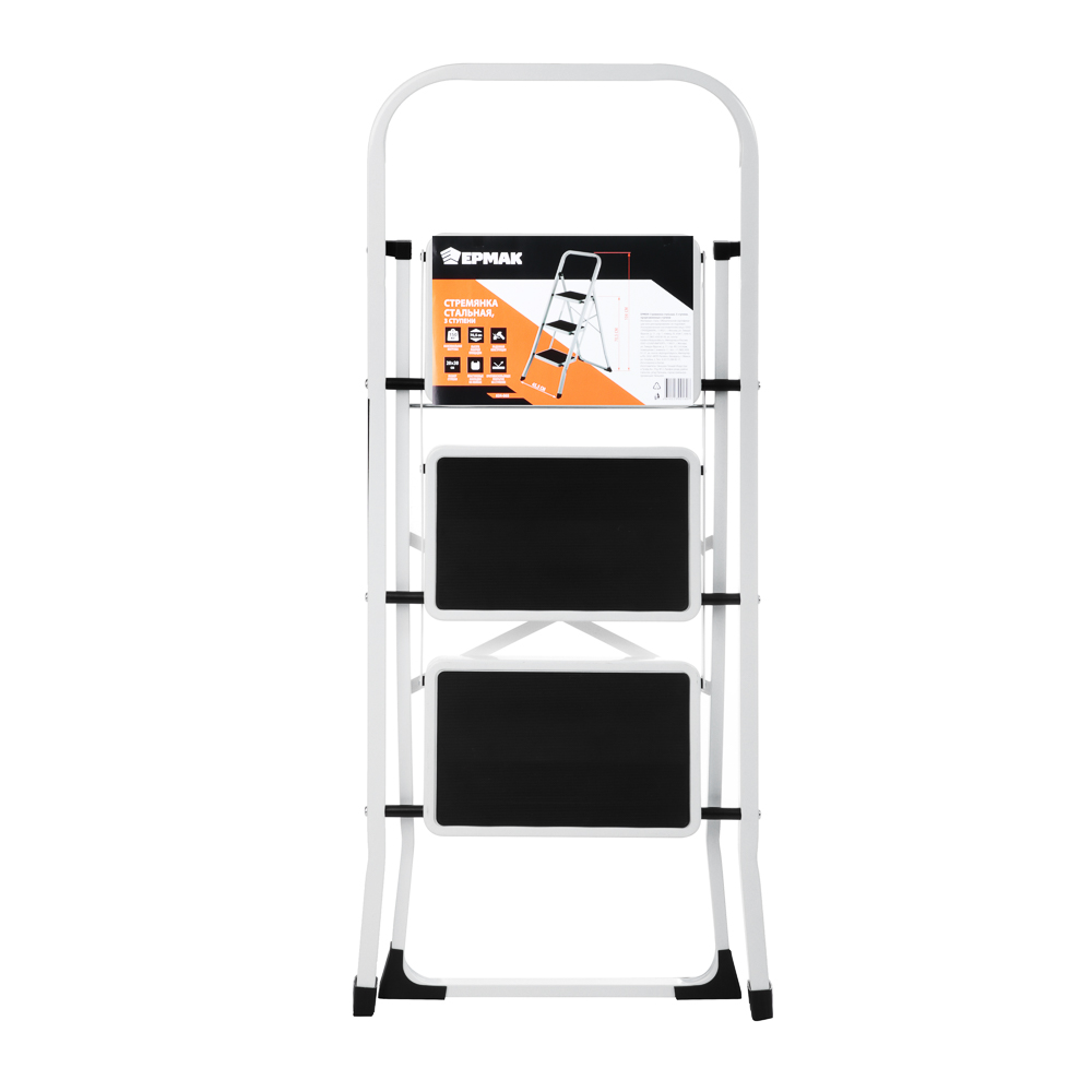 Подойдёт для использования как внутри так и снаружи помещения: для дома, для кухни, для прихожей, и т.д. Широкие ступени с пластиковыми накладками позволяют комфортно ее использовать. Боковины выполнены из стали, с порошковой покраской. В сложенном состоянии модель занимает мало места, что удобно при хранении. Устойчивость обеспечивается противоскользящими заглушками. Максимальная нагрузка - 150 кг.