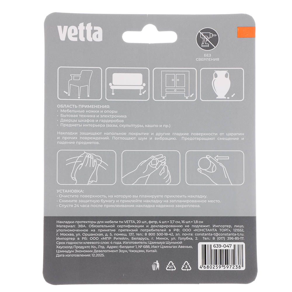 Накладки-протекторы для мебели тм VETTA, 20 шт, фетр, 4шт*3,7 см, 16шт*1,8 см