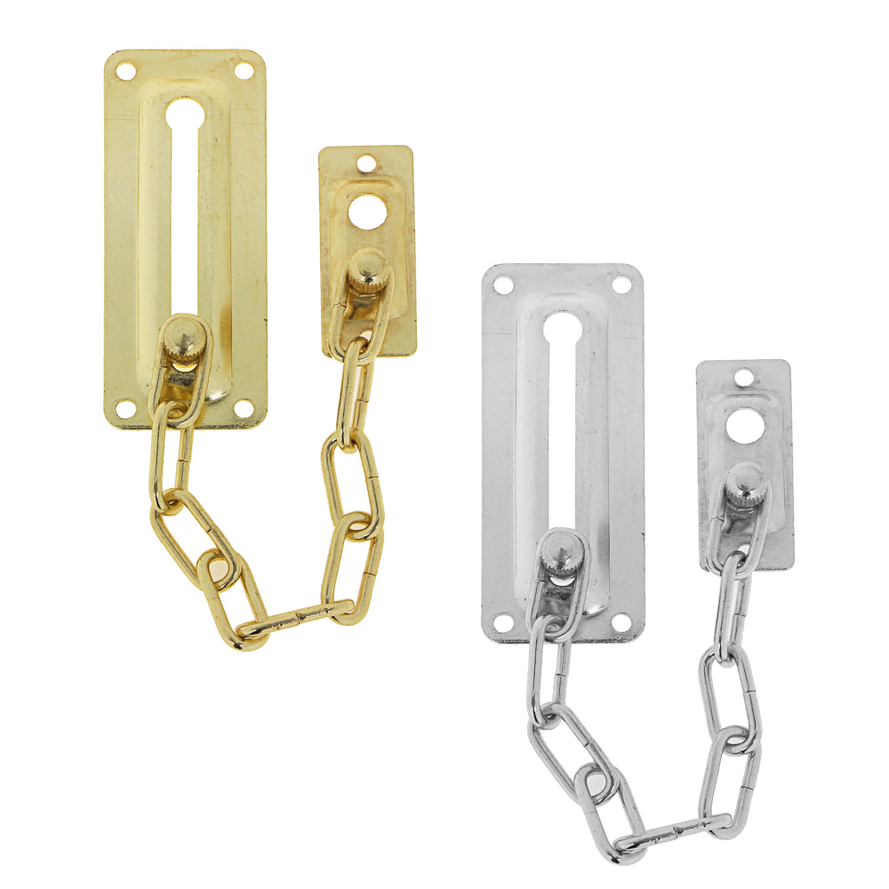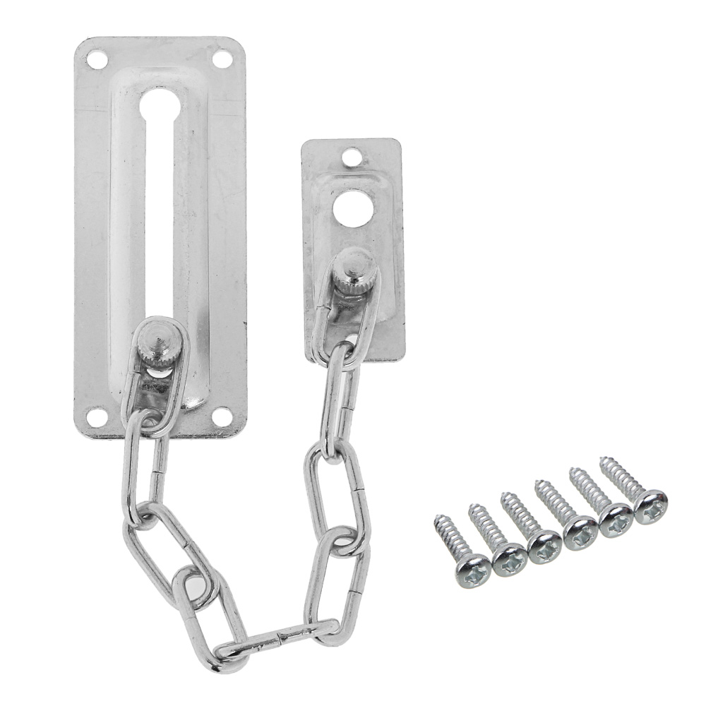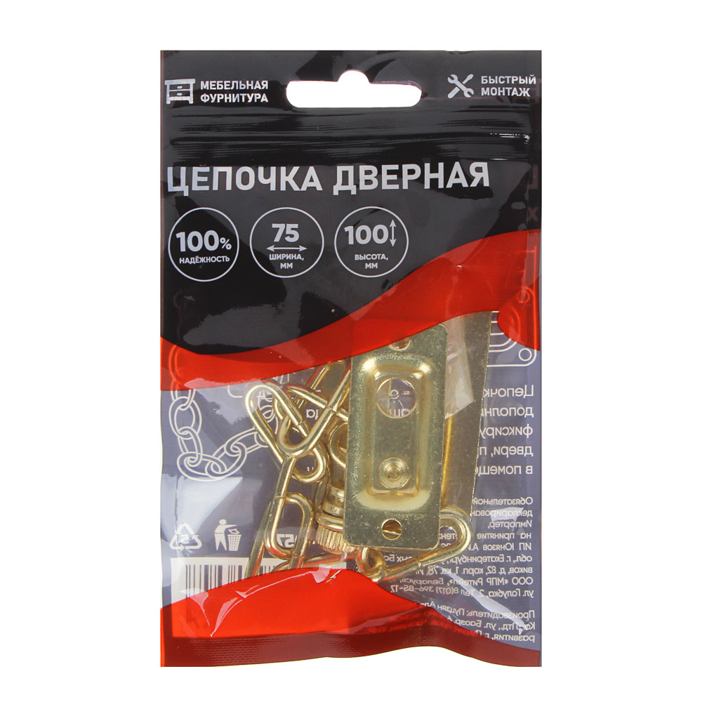 Дверная цепочка из металла с хромированным покрытием шириной 75 мм и высотой 100 мм – удобное приспособление, ограничивающее открывание входной двери. Обеспечит дополнительную безопасность и будет особенно актуальна, если в доме есть дети. Цепочка выполнена из надежного металла с крепкими звеньями, обладающими особой прочностью на растяжение и разрыв. Легко и быстро устанавливается и крепится на дверь при помощи саморезов, которые входят в комплект. 2 цвета на выбор: золото, металл.