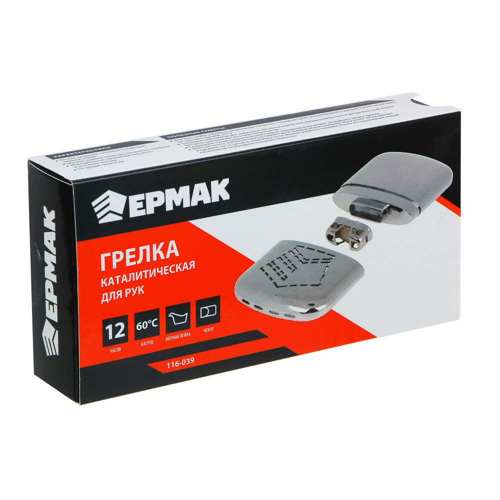 Каталитическая грелка для рук ЕРМАК – необходимая часть снаряжения для любителей туристических походов. Грелка дает мягкое устойчивое тепло (60 градусов) до 12 часов, имеет компактный размер и удобный чехол для хранения. Изготовлена из цинкового сплава. В комплект включена мерная лейка для заправки. Грелка будет эффективна для использования в осеннее и зимнее время на рыбалке, охоте, в походе или при работе на улице.