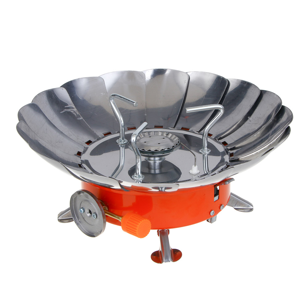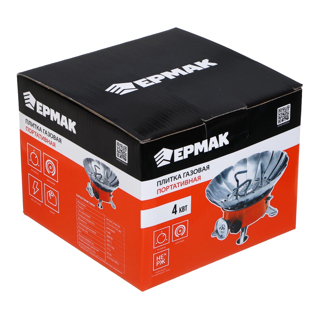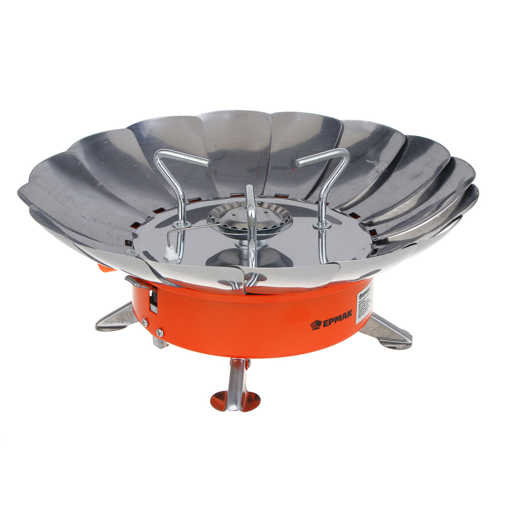 Газовая портативная плитка «Ермак» с цанговым захватом и большой тепловой мощностью 4 кВт — отличный выбор для приготовления пищи в походных условиях, на рыбалке или охоте. Благодаря лепесткам, плитка устойчиво стоит на поверхности, обеспечивая комфорт при использовании. Плитка имеет регулировку пламени для точной настройки температуры, подключение через цанговый захват для надёжного крепления газового баллона, пьезоподжиг для быстрого и безопасного зажигания горелки, а также расход газа 100 г/час и давление газа в диапазоне 0,39–0,65 МПа, что гарантирует стабильную работу плитки.
