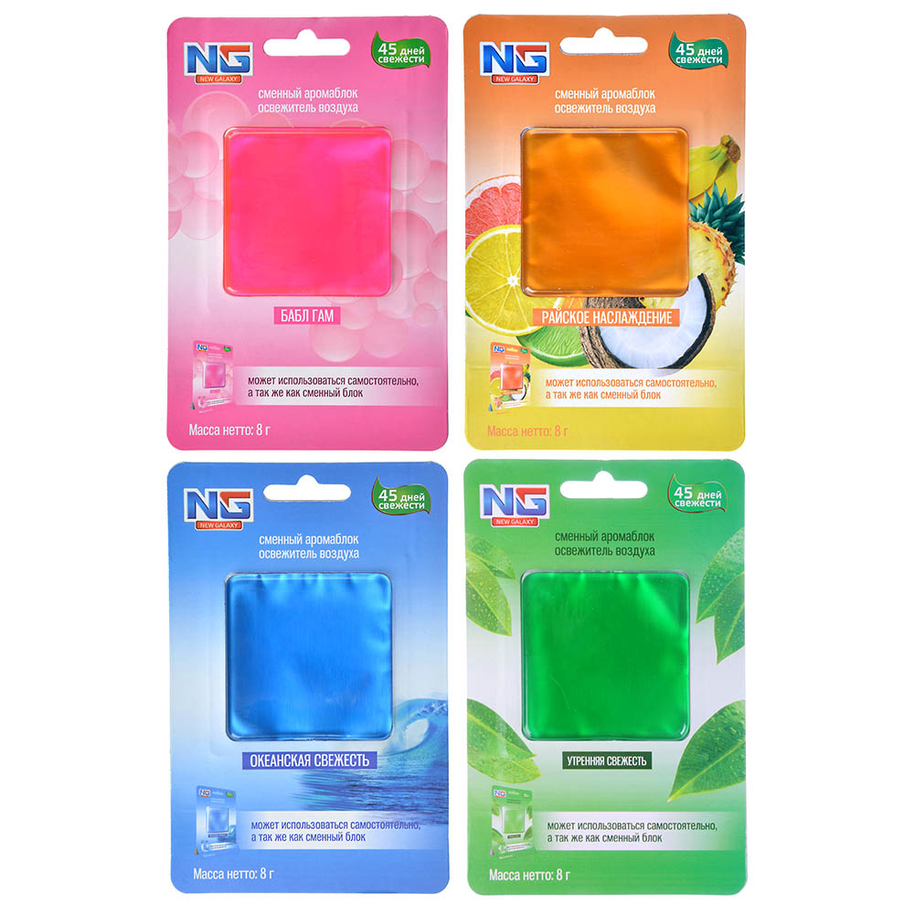 Мембранный гелевый ароматизатор NEW GALAXY HOME предназначен для использования в доме, автомобиле или в офисе. Может использоваться самостоятельно или в качестве сменного блока. Обеспечивает 45 дней свежести. Имеет ненавязчивый аромат и эффективно нейтрализует неприятные запахи, дезодорируя воздух. Доступно 4 аромата: бабл гам, райское наслаждение, утренняя свежесть, океанская свежесть.
