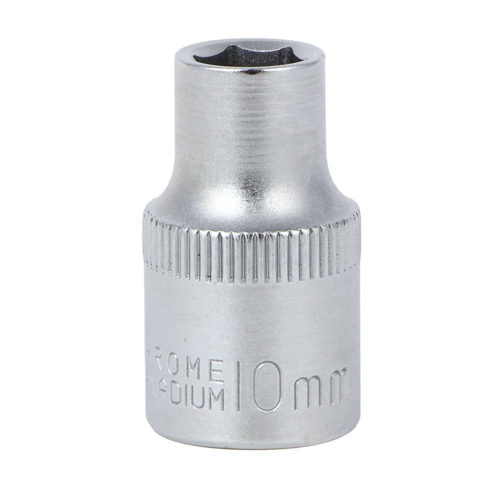 Головка торцевая ЕРМАК с шестью гранями с размером головки 10 мм и рабочим профилем 1/2" предназначена для работы с резьбовыми соединениями. Обеспечивает надежный захват и не повреждает крепеж в процессе монтажа и демонтажа. Выполнена из хромванадиевой стали, устойчива к коррозии и обладает высокой стойкостью к деформации, поэтому имеет высокий ресурс службы.