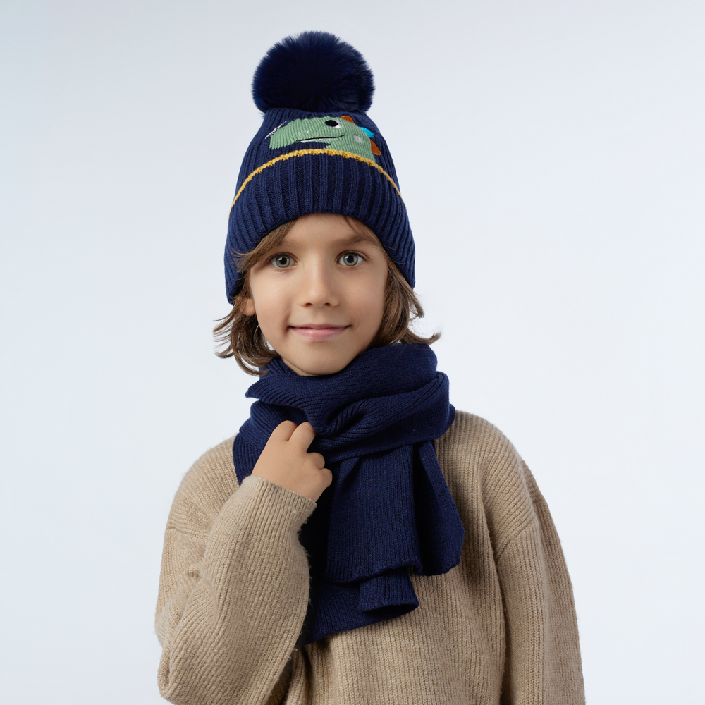 Чтобы в прохладное время года образ вашего юного джентльмена выглядел полноценным, нельзя обойтись без стильных аксессуаров. Одними из них являются теплая и модная шапка и шарф, которые незаменимы в холодное время года. Детская шапка и шарф для мальчиков подчеркнут вкус, согреют теплом и уютом! Шапка детская Galante выполнена с подкладкой из мягкого флиса. Украшена принтом "динозаврик".