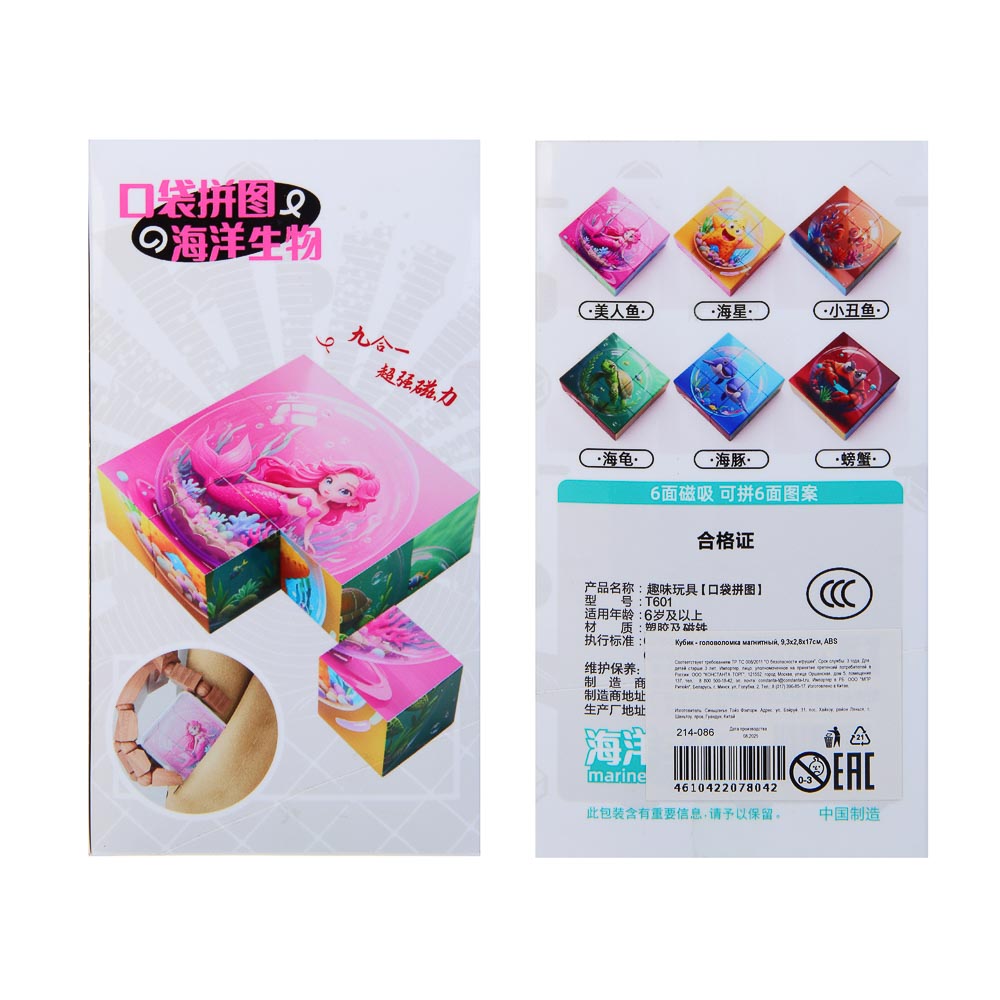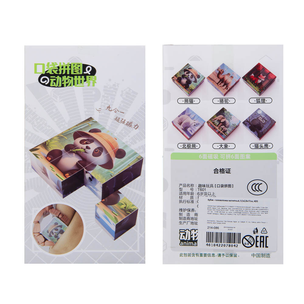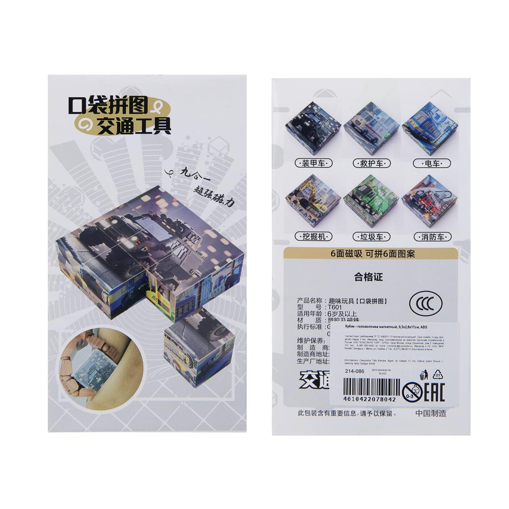 Кубик-головоломка магнитный, 9,3х2,8х17 см, из ABS – это умный тренажер для развития логики, моторики и пространственного мышления. 9 элементов надежно соединяются между собой, образуя красочную иллюстрацию. Кубик можно разбирать и собирать сколько угодно раз. Прочный ABS-пластик не ломается и не трескается. Игрушку можно взять с собой в дорогу, чтобы разнообразить детский досуг и отвлечь ребенка от гаджетов. Для детей от 3-х лет. Микс дизайнов в ассортименте.
