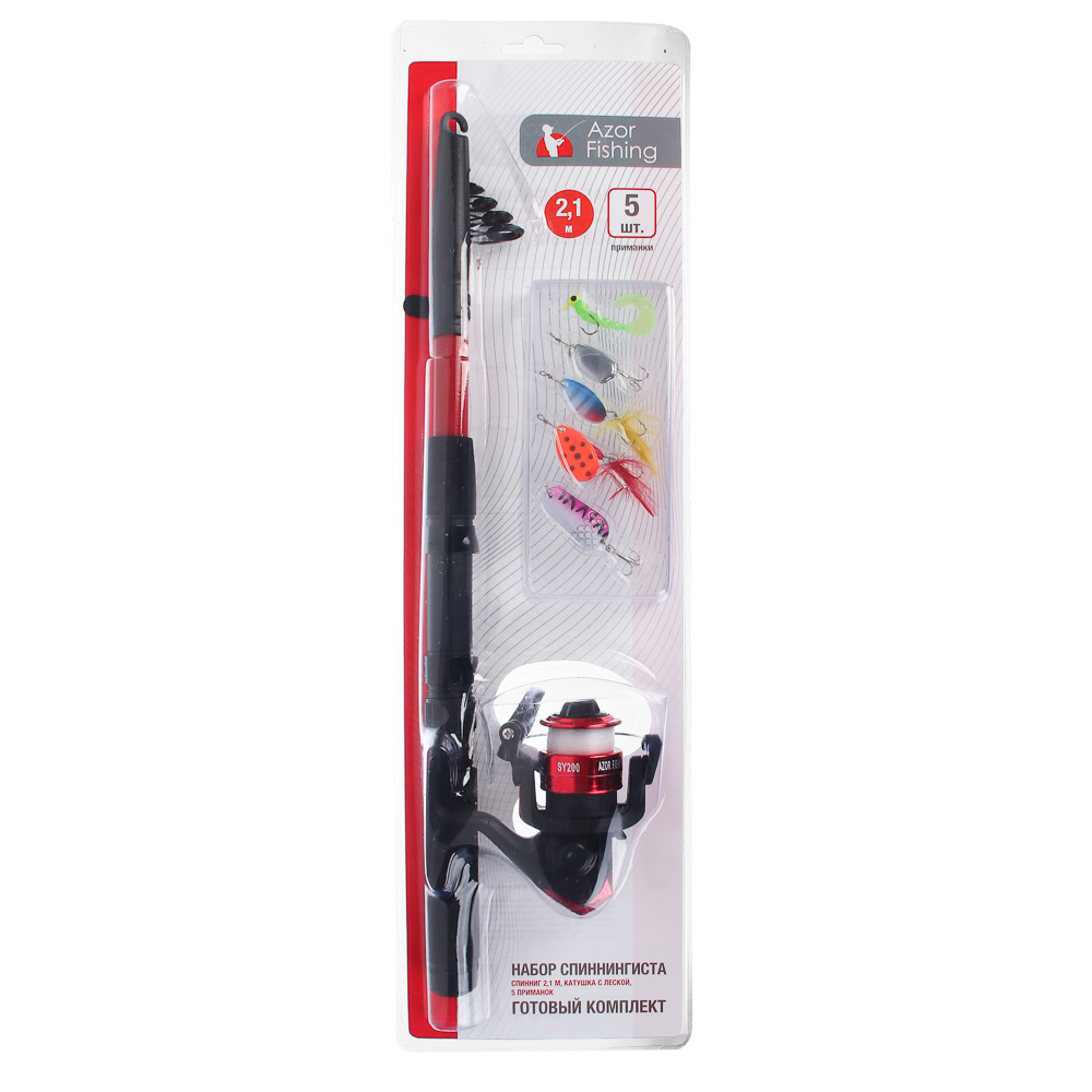 AZOR FISHING Набор спиннингиста. Спиннинг- это разновидность удилища, которое предназначается для ловли хищной рыбы. Отличие этого инструмента от обычной удочки в том, что спиннинговая ловля подразумевает активный поиск и дальнейшую поимку рыбы на игру приманкой. Максимальная длина удочки 2,1 метра, это оптимальный размер для начинающего и опытного рыболова. Характеризуются отличной балансировкой и грамотным распределением веса, что положительно сказывается на точности и дальности совершаемых забросов. Azor Fishing включает все необходимые приспособления для рыбалки: телескопическая удочка длиной 210 см, пять приманок, катушка с леской. Больше не нужно что-то искать и приобретать отдельно. Возьмите комплект и отправляйтесь на водоем в поиске легкой наживы.