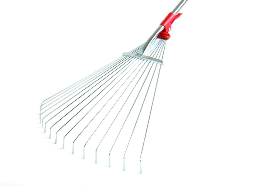 Грабли веерные регулируемые используются для уборки участка от скошенной либо завядшей травы. Оснащены 15 зубцами из стальной проволоки диаметром 3 мм.