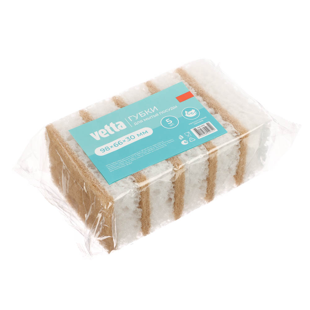 Набор из 5 губок для мытья посуды от BY Русские Супергерои в стильном кораллово-белом цвете. Размер каждой губки 98x66x30 мм подходит для комфортного использования на кухне. Одна сторона губки оснащена абразивным слоем, который эффективно удаляет загрязнения и жир, не повреждая посуду. Мягкая сторона губки предназначена для деликатных поверхностей. Губки идеально подходят для ежедневной уборки и легко моются, обеспечивая долгий срок службы и отличные результаты.