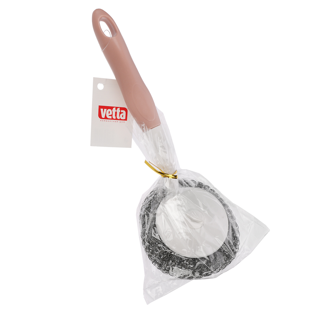 Металлическая губка VETTA с ручкой как нельзя лучше подходит для очистки кастрюль, сковород, противней, гриля и многих других предметов. Отличается высокой эффективностью, износоустойчивостью и долговечностью. Благодаря удобной ручке изделие применяется в труднодоступных местах. Моющая часть не деформируется даже при длительной эксплуатации. Металлическая губка требует меньше усилий при работе с сильнозагрязнённых поверхностей и позволяет легко удалить подгоревшие продукты и жир.