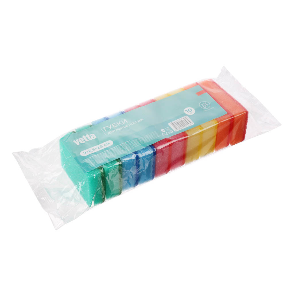 Губки предназначены для мытья посуды, столовых приборов, кухонной утвари, а также подходят для чистки поверхности плит, раковин, ванн и кафеля. Губка обладает высокой впитываемостью, за счет чего быстро превращает каплю моющего средства в густую пену. Легко отмывается от любых загрязнений. Одна из сторон губки оснащена слоем абразивного материала, предназначенного для чистки.