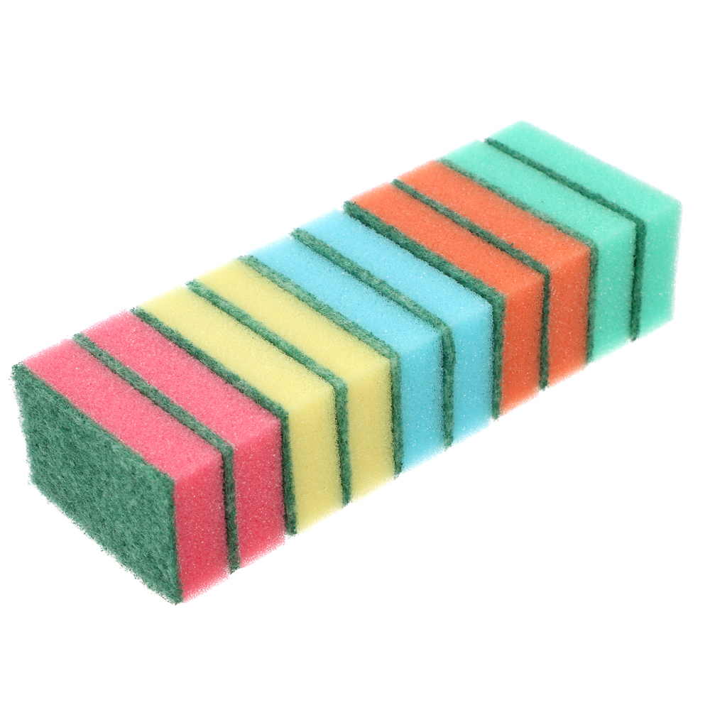 Губки предназначены для мытья посуды, столовых приборов, кухонной утвари, а также подходят для чистки поверхности плит, раковин, ванн и кафеля. Губка обладает высокой впитываемостью, за счет чего быстро превращает каплю моющего средства в густую пену. Легко отмывается от любых загрязнений. Одна из сторон губки оснащена слоем абразивного материала, предназначенного для чистки.
