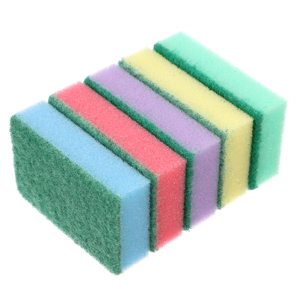 Губки предназначены для мытья посуды, столовых приборов, кухонной утвари, а также подходят для чистки поверхности плит, раковин, ванн и кафеля. Губка обладает высокой впитываемостью, за счет чего быстро превращает каплю моющего средства в густую пену. Легко отмывается от любых загрязнений. Одна из сторон губки оснащена слоем абразивного материала, предназначенного для чистки.