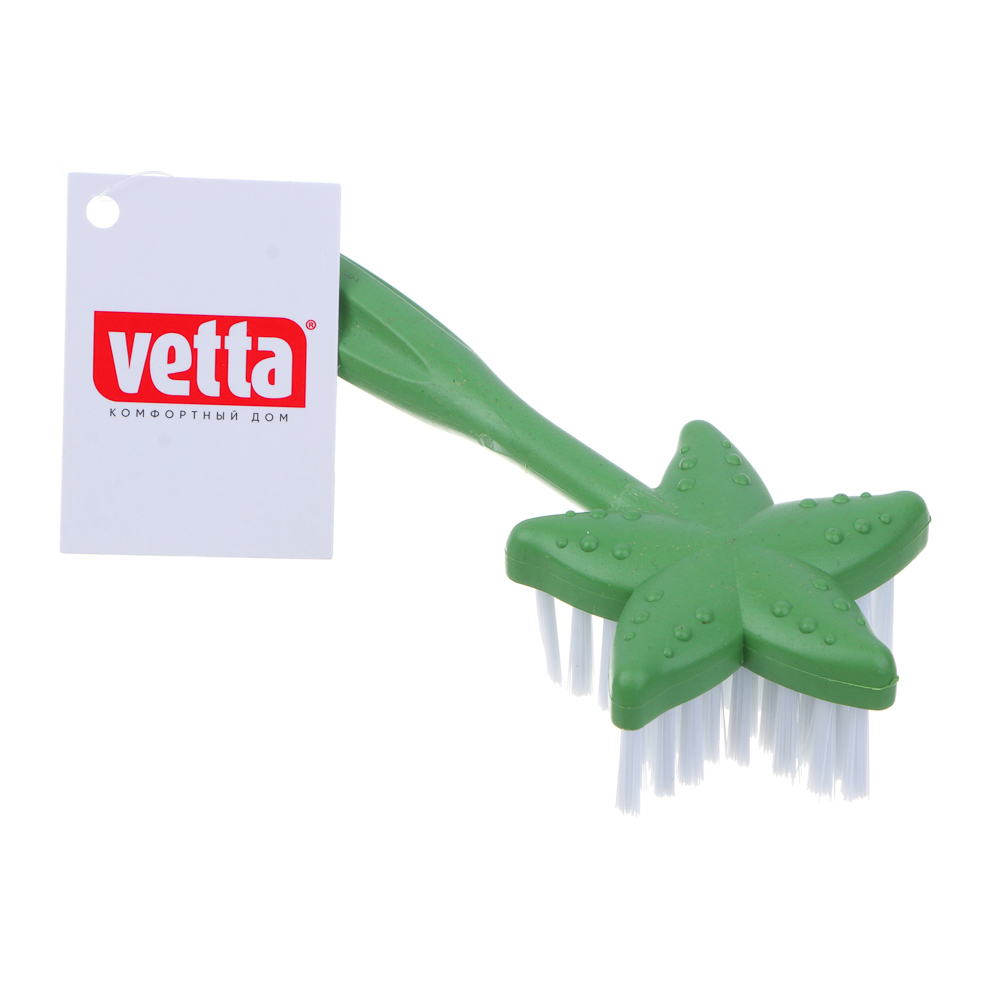 Хозяйственная щетка для уборки VETTA в виде звезды – универсальное приспособление, которое справится с любыми загрязнениями. Эффективно очищает известковый налет на плитке и сантехнике, без следа удаляет нагар с противней и мангалов, собирает шерсть с ковров и мебели. При использовании средств бытовой химии образует обильную пену. Имеет компактный размер, легко умещается в руке. Надежная и долговечная.