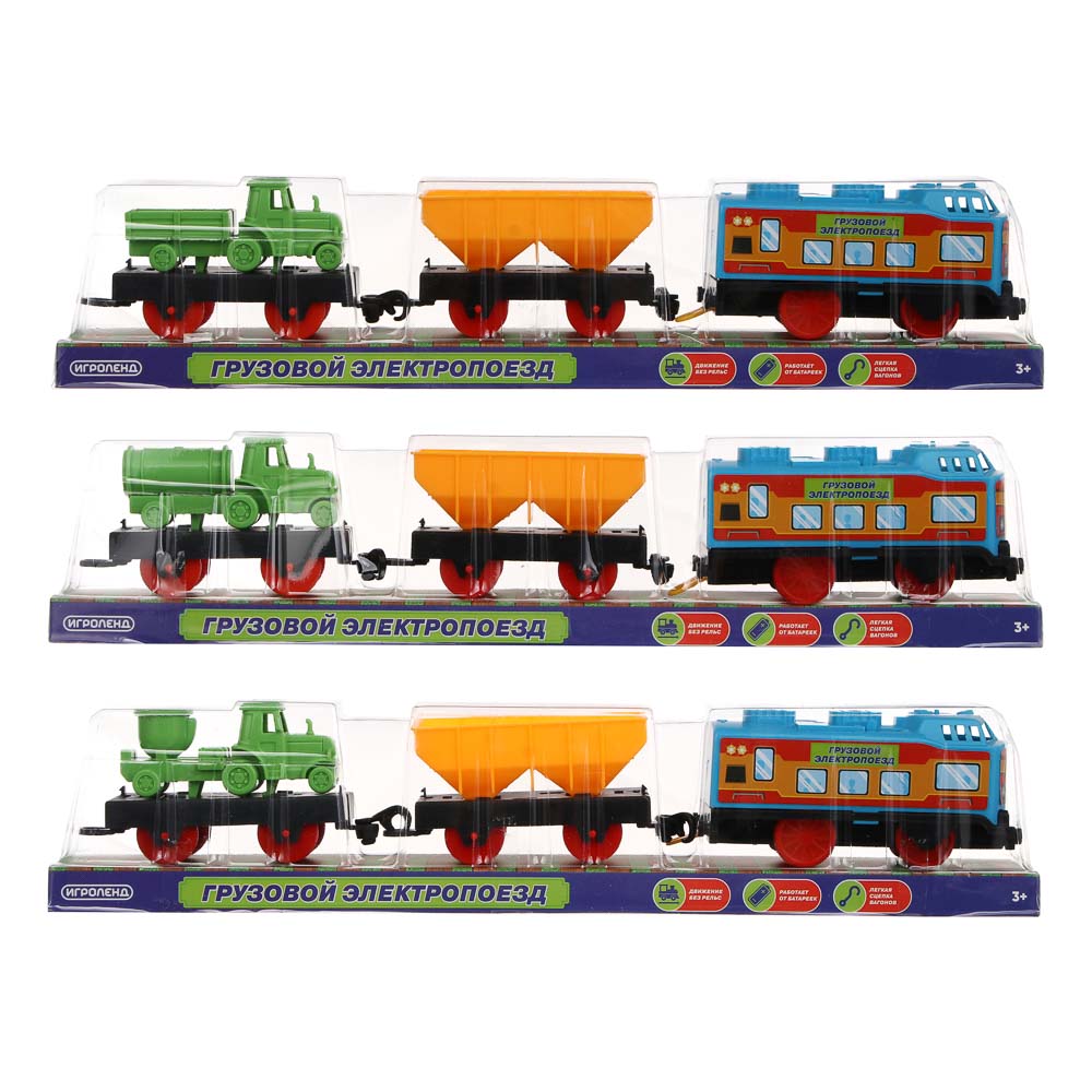 Электропоезд игрушечный, тм ИГРОЛЕНД "Грузовой" с инерционным механизмом создан для увлекательных игр – катать его можно по полу, столу или дивану, а еще ему не нужны рельсы. Вагоны оснащены лёгкой сцепкой, которая позволяет быстро соединять и разъединять их, меняя состав по своему желанию. Привлекательный дизайн и яркий цвет, несомненно, понравится ребенку. Выполнен из безопасных нетоксичных материалов, выдерживает активные игры. Игрушка развивает мелкую моторику, координацию и знакомит с миром железнодорожного транспорта. Работает от одной батарейки типа АА. Рекомендуемый возраст ребенка – от 3-х лет.