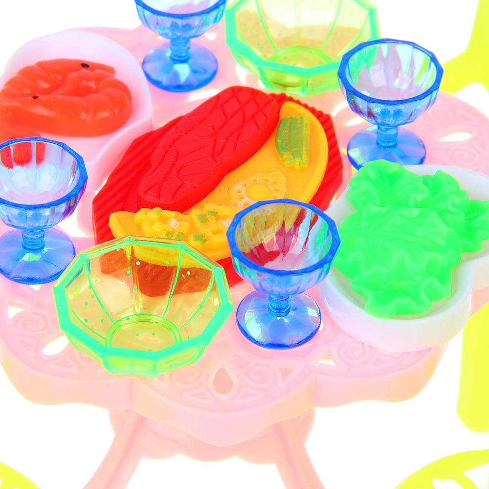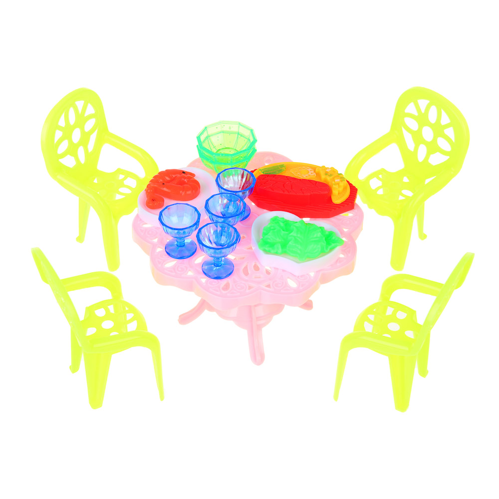 Набор мебели и посуды – незаменимый атрибут для маленького дизайнера, который хочет создать уют в кукольном домике. Уникальные детали придадут игровым сценариям новизны и реализма. Все изделия изготовлены из качественного пластика и покрыты безопасными красками. Отсутствие острых углов и краев гарантирует, что игрушки не нанесут вред малышу. В комплект входят не только мебельные предметы, но и посуда, и фрукты. Этот набор полезен не только для развития эстетического восприятия у ребенка, но и для развития его коммуникативных навыков, образного мышления, а также для моделирования бытовых ситуаций. Порадовать ребенка – легко, достаточно купить данный набор, добавив его в корзину.