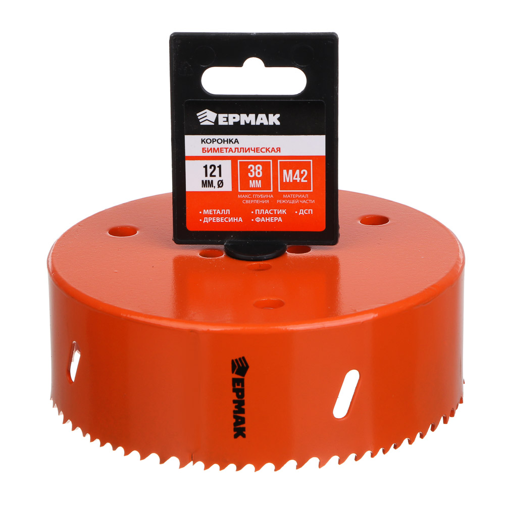 Биметаллическая коронка ЕРМАК размером 121 мм поможет быстро формировать отверстия в различных материалах, включая металл, пластик, древесину, фанеру и ДСП. Предназначена для использования совместно с дрелью. Максимальная глубина сверления – 38 мм. Материал режущей части сталь M42 отличается высокой твердостью и износостойкостью. Быстро просверливает отверстия с высокой точностью и с образованием гладкой кромки.